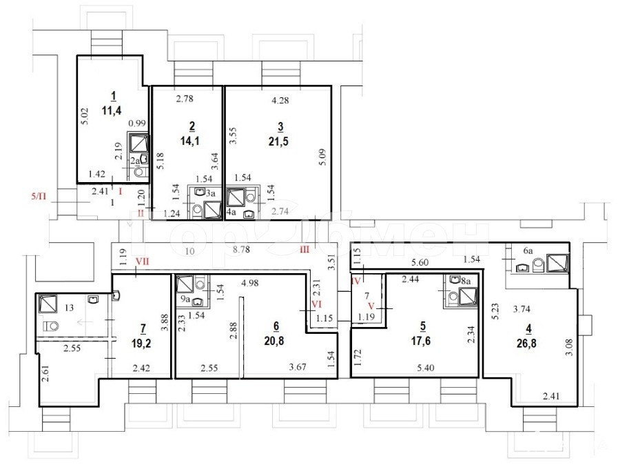 14, 1 кв.м, № 2 на плане. Свежий ремонт, в хорошем состоянии. Цокольный этаж пятиэтажного жилого дома («сталинка»).