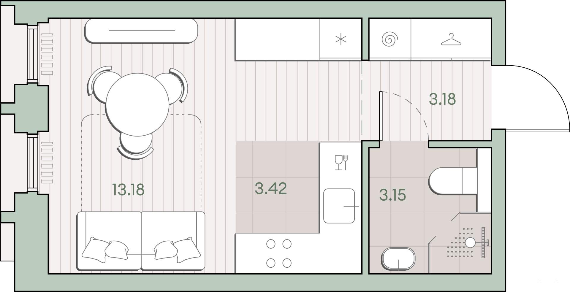 - 13.18 м²