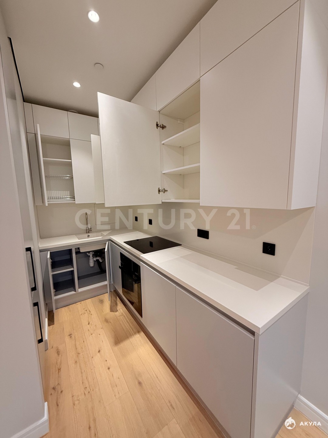 Апартаменты выполнены в формате студии с совмещенным санузлом. Выполнен качественный дизайнерский ремонт с использованием хороших материалов. Кухонная зона площадью 3 кв. м оборудована всей необходимой техникой. В квартире присутствует встроенная мебель, что делает переезд максимально простым. Окна выходят на улицу, обеспечивая постоянное естественное освещение.