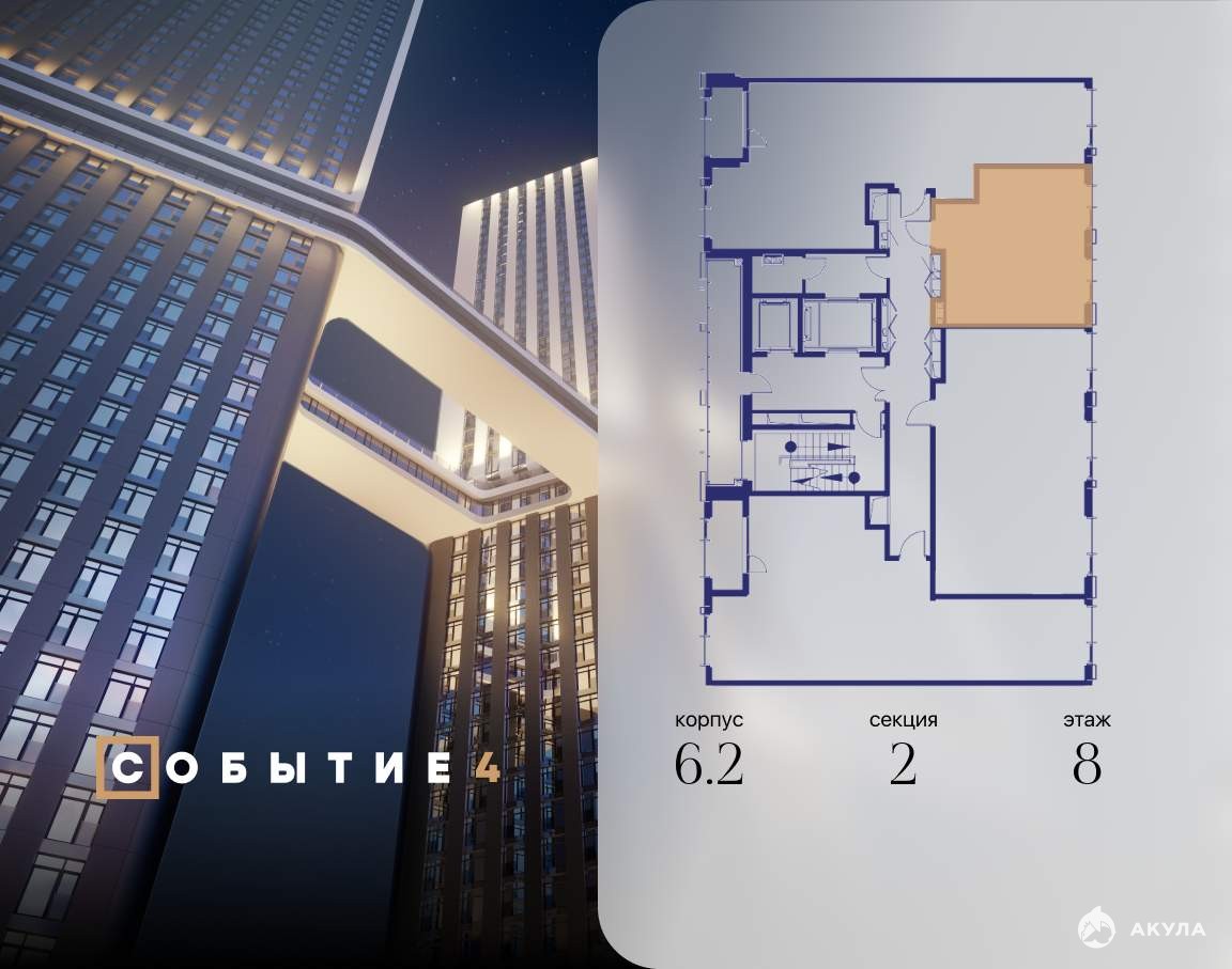 Продаётся квартира-студия от застройщика: общая площадь 33.90 м, жилая 20.00 м, кухня 5.00 м, 8-й этаж, жилой квартал «Событие-6», корпус 2 (секция 2) Срок сдачи: 1 квартал 2029 года.