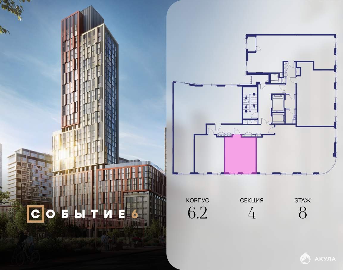 Продаётся квартира-студия от застройщика: общая площадь 32.40 м, жилая 20.80 м, кухня 5.00 м, 8-й этаж, жилой квартал «Событие-6», корпус 2 (секция 4) Срок сдачи: 1 квартал 2029 года.