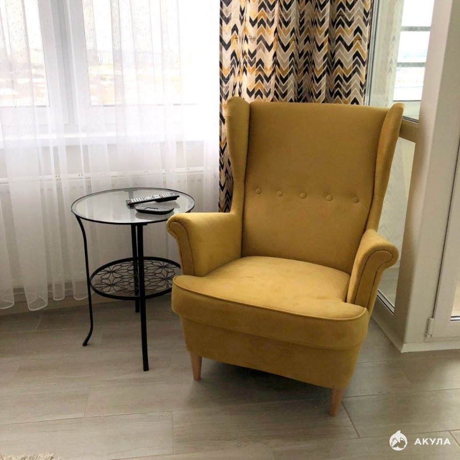 Особенностью этой квартиры является наличие лоджии, где можно разместить небольшой столик и стулья, создав уютное место для отдыха с видом на город.
