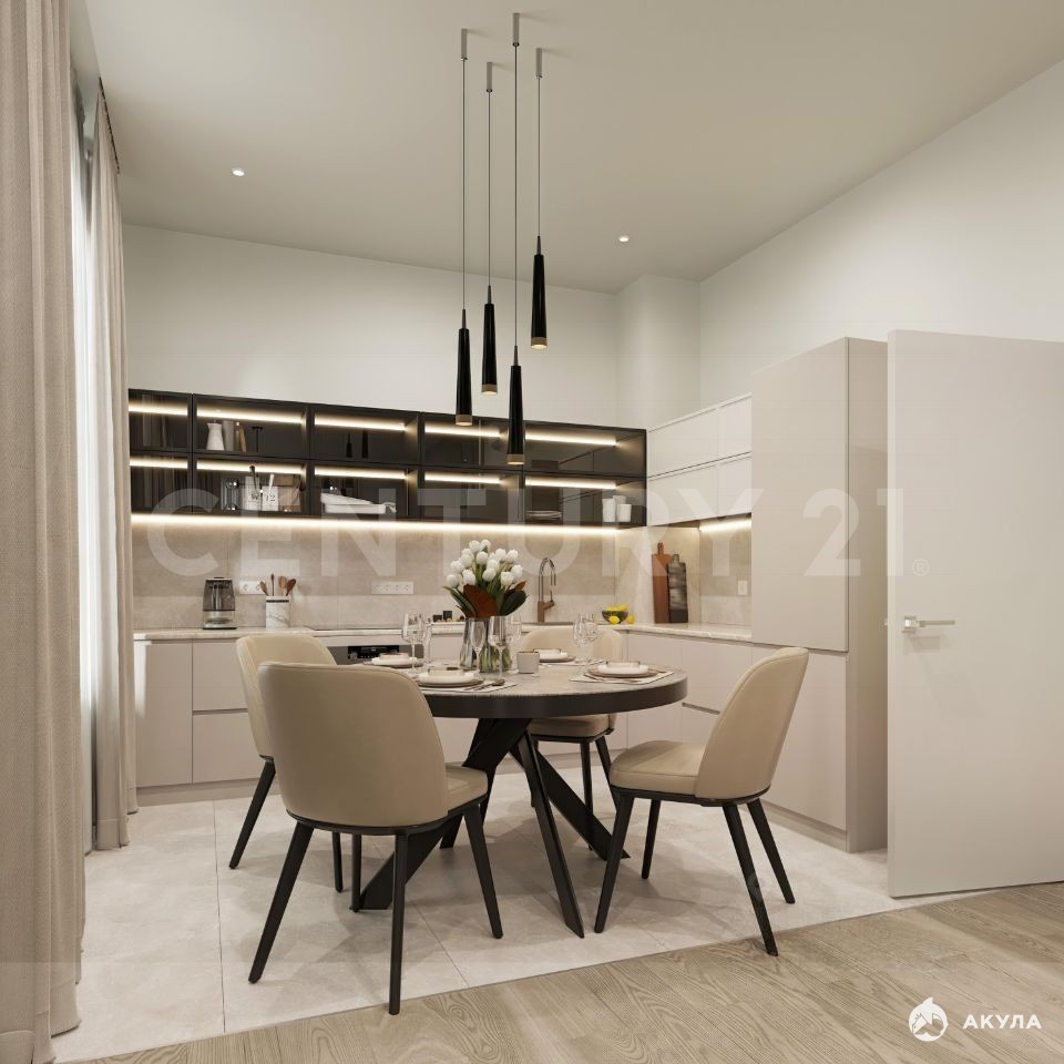 Квартира граничит всего с одним соседом на этаже, а улучшенная шумоизоляция до 57 дБ обеспечивает тишину. В ремонте использованы качественные современные материалы в светлой спокойной палитре — можно сразу заезжать и обустраивать пространство под себя.