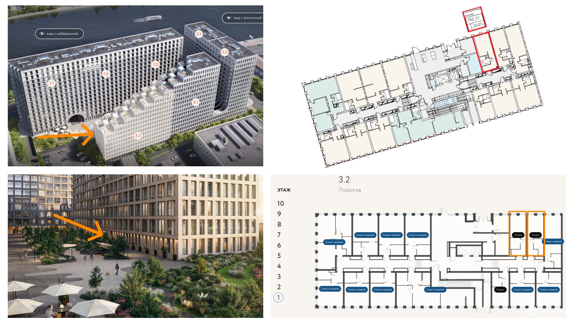 Уникальный архитектурный дизайн, закрытая территория и приватный благоустроенный внутренний двор с озеленением, панорамные окна, потолки высотою 3 метра, величественное лобби, переговорные комнаты, детские игровые зоны, система умный дом, сервис от управляющей компании – только часть преимуществ, которые вы получите при покупке этих апартаментов.