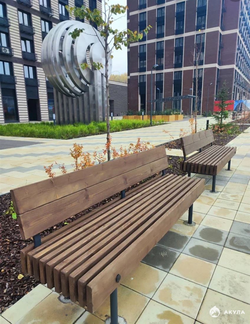 * Современный комплекс на стилобате: двор без машин, детские и спортивные зоны, коммерция на первых этажах.