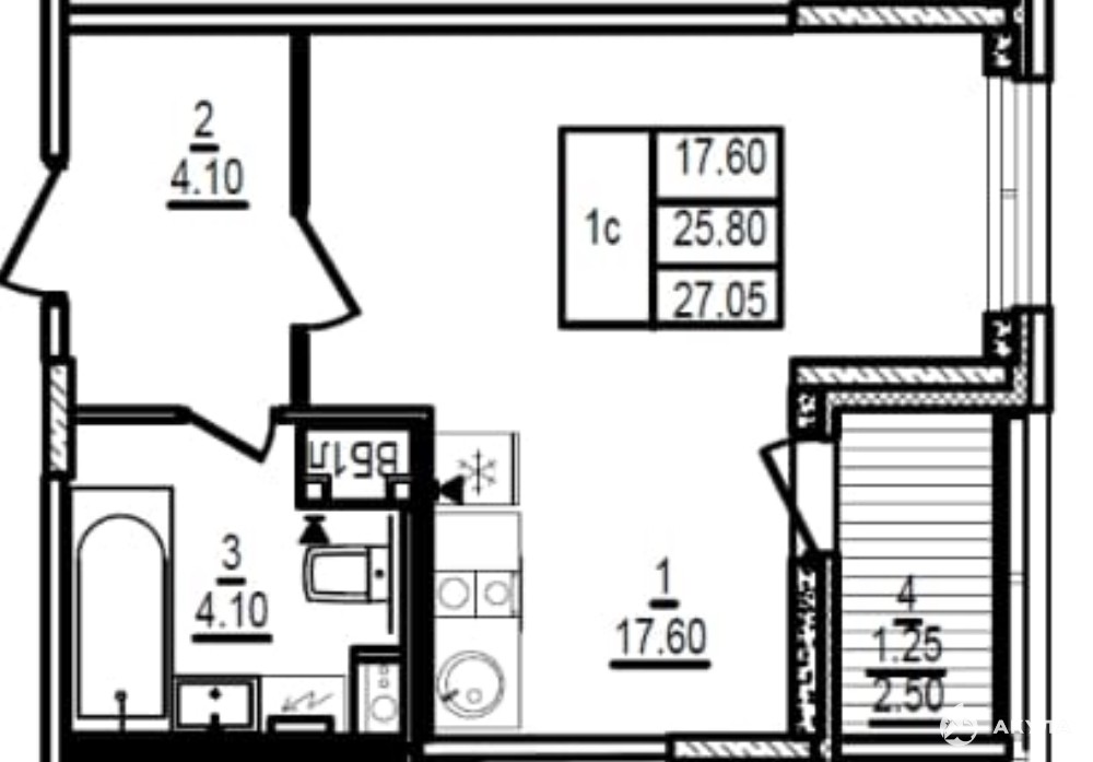 Арт. 88445536. Продается студия, планируемая сдача апрель 2026г. С готовой отделкой.