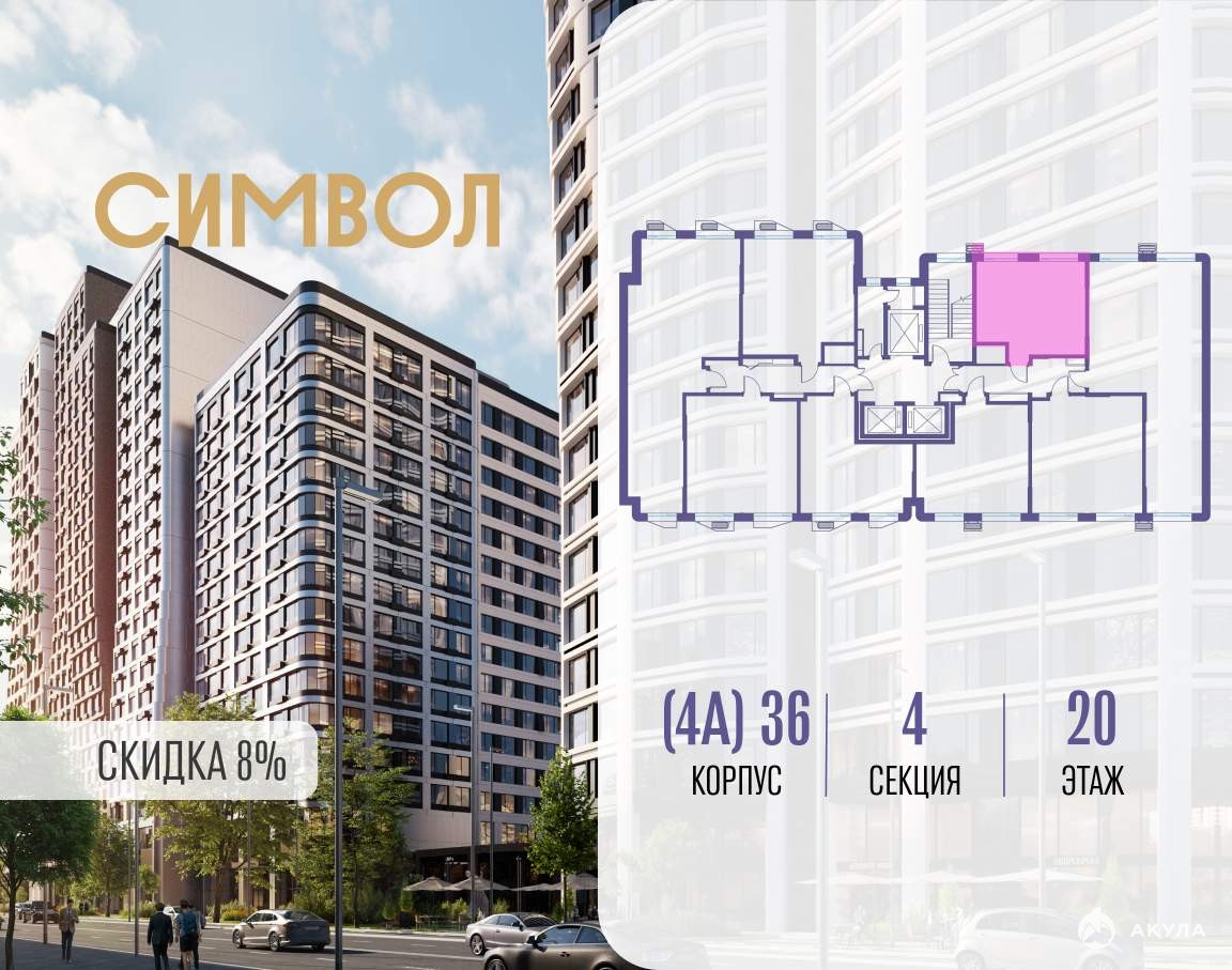 Продается квартира-студия от застройщика: общая площадь 35.30 м, жилая 10.00 м, кухня 14.80 м, 20-й этаж, жилой квартал «Гордость», корпус 36 (секция 4) . Срок сдачи: 2 квартал 2029 года.