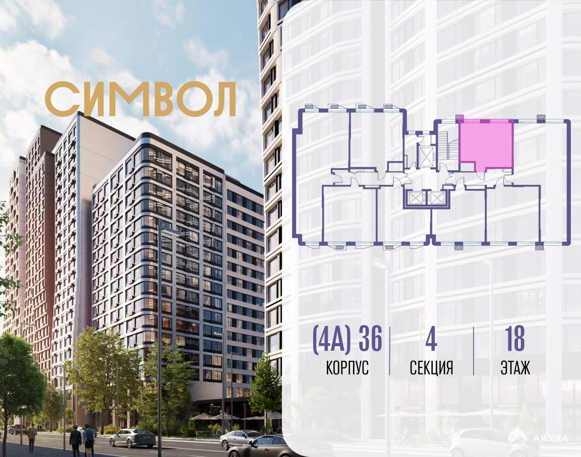 Продается квартира-студия от застройщика: общая площадь 35.30 м, жилая 10.00 м, кухня 14.80 м, 18-й этаж, жилой квартал «Гордость», корпус 36 (секция 4) . Срок сдачи: 2 квартал 2029 года.