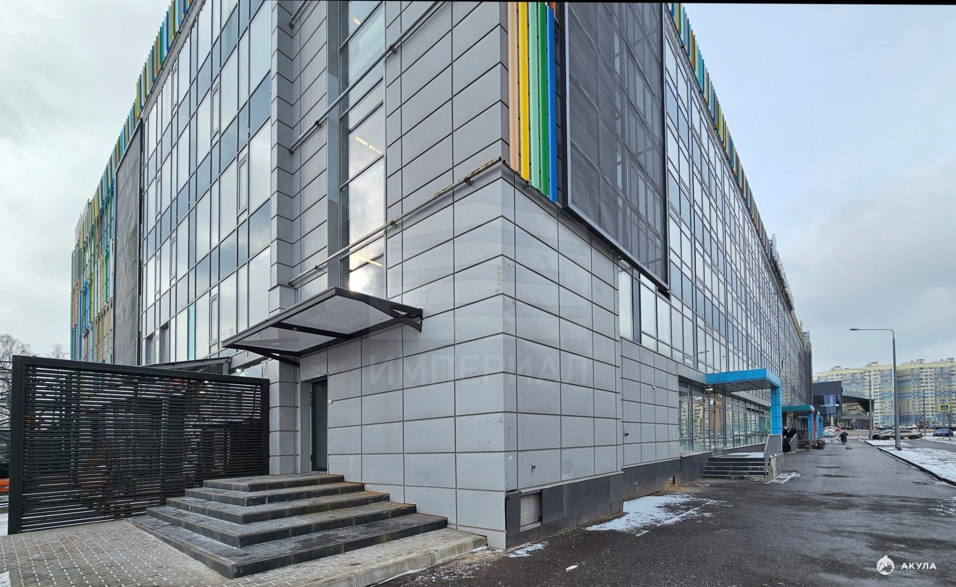 Доступ в здание открыт круглосуточно. Современный фасад здания стилизован яркой подсветкой, за счет чего создается дополнительное освещение.