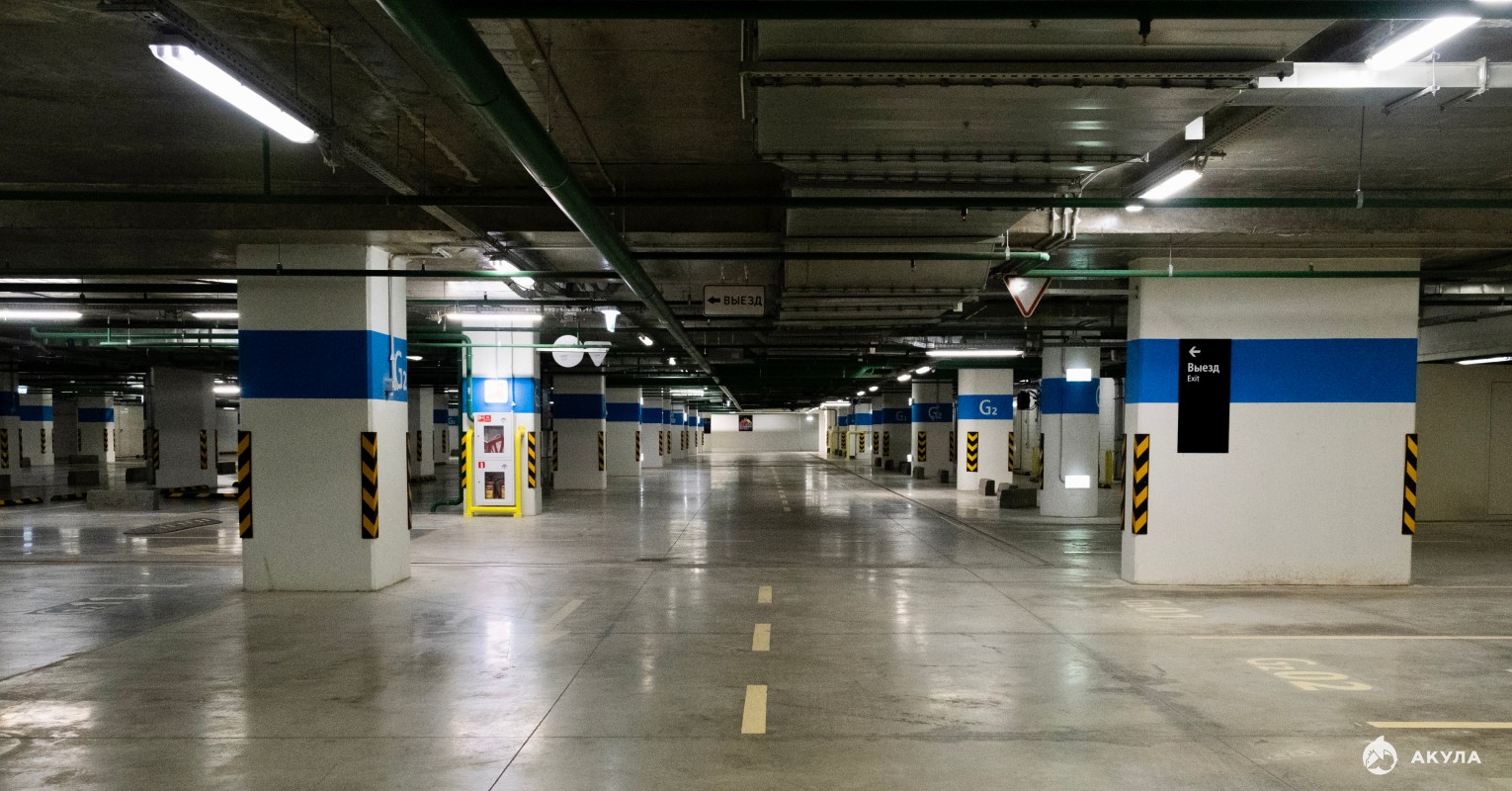 Профессиональная мойка внутри паркинга.