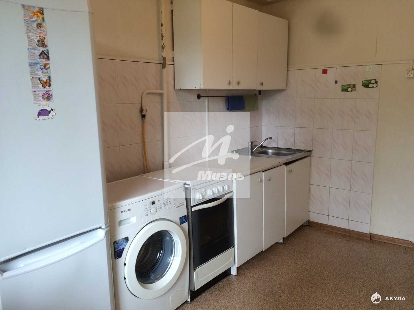 Квартира укомплектована необходимым набором техники и мебели.