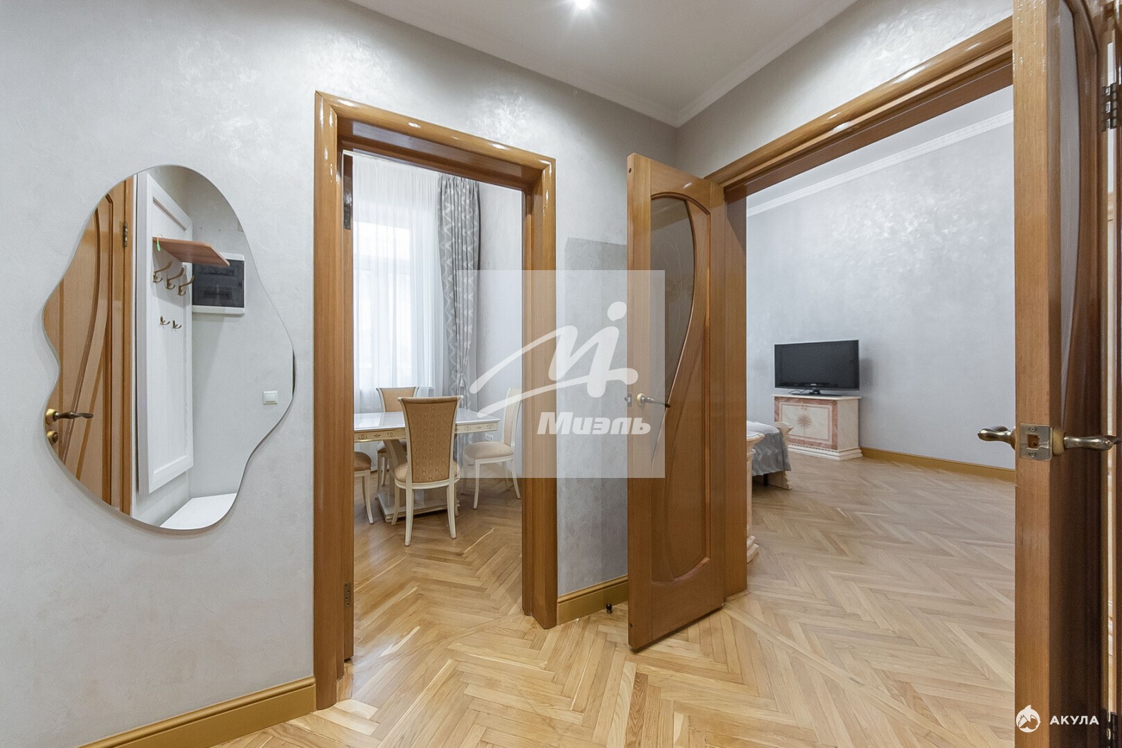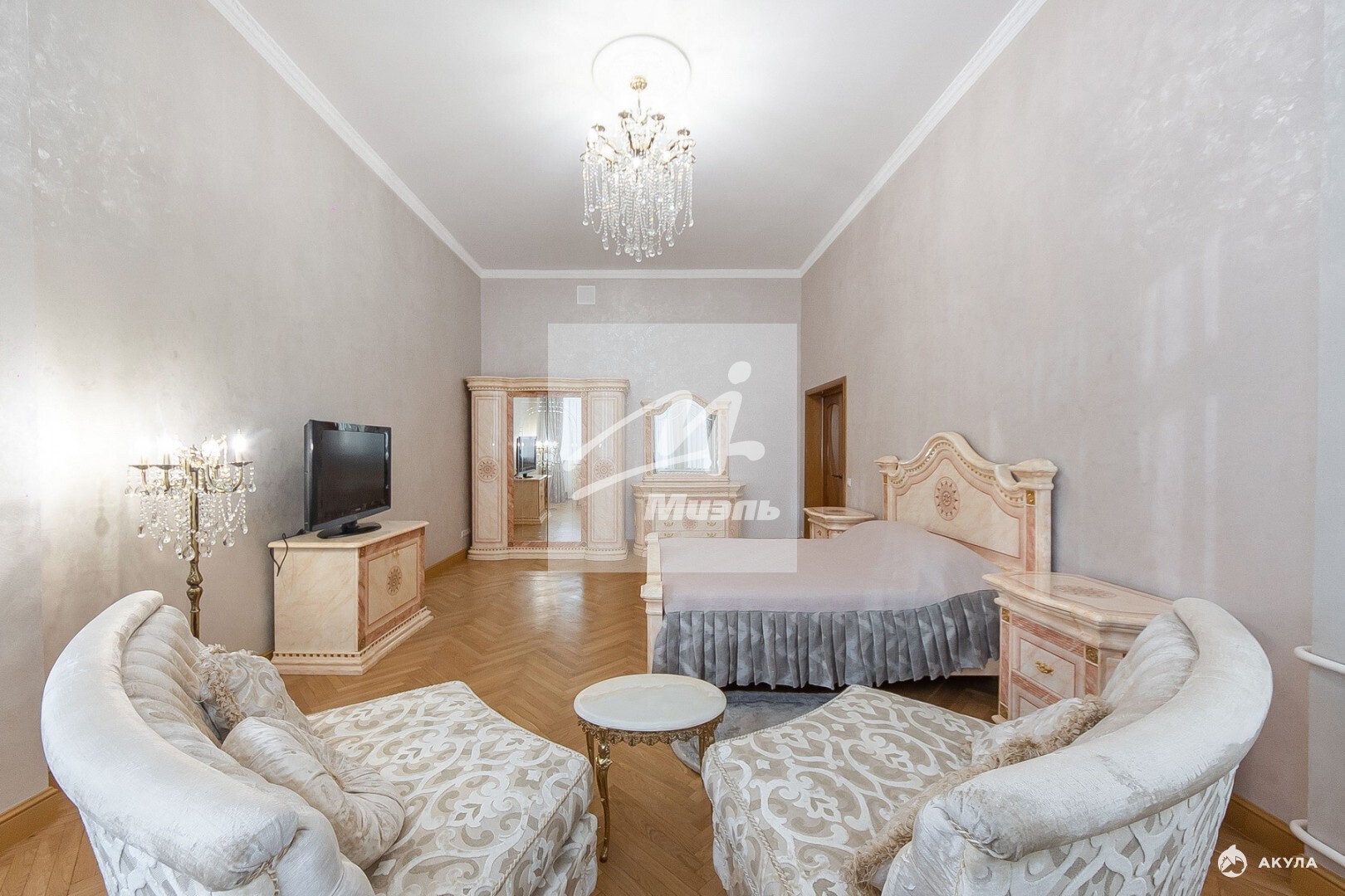 Квартира полностью меблирована и оборудована качественной техникой Korting. ДВА КОНДИЦИОНЕРА и ПОСУДОМОЕЧНАЯ МАШИНА. В столовой и комнате итальянская мебель. Дубовый паркет. Стены: штукатурка - декоративный песок, покрытый лаком.