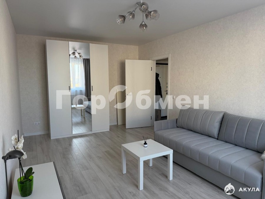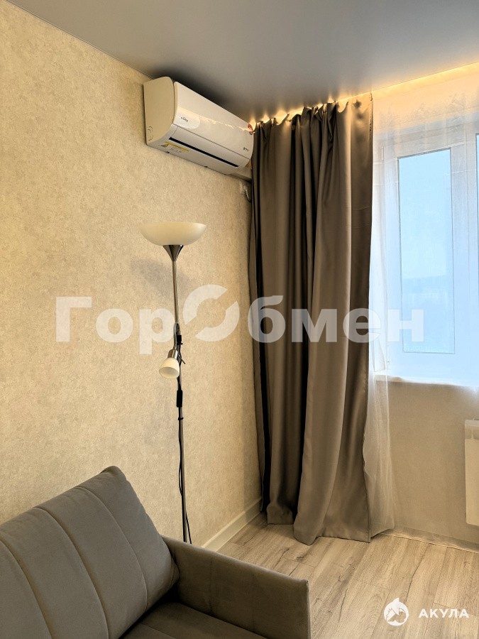 В комнате раскладной диван, шкаф с зеркалом, тумба для ТВ, журнальный столик, торшер. Кондиционер.