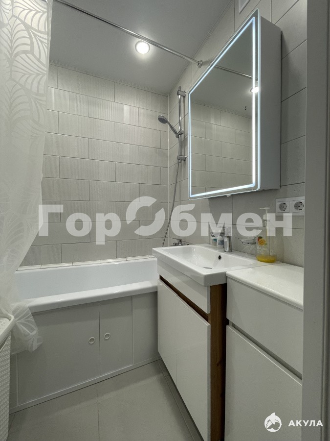 Укомплектованная ванная комната, стиральная машина. Вся необходимая мебель в коридоре: большой шкаф, открытая тумба для обуви, настенная вешалка, пуфик, зеркало.