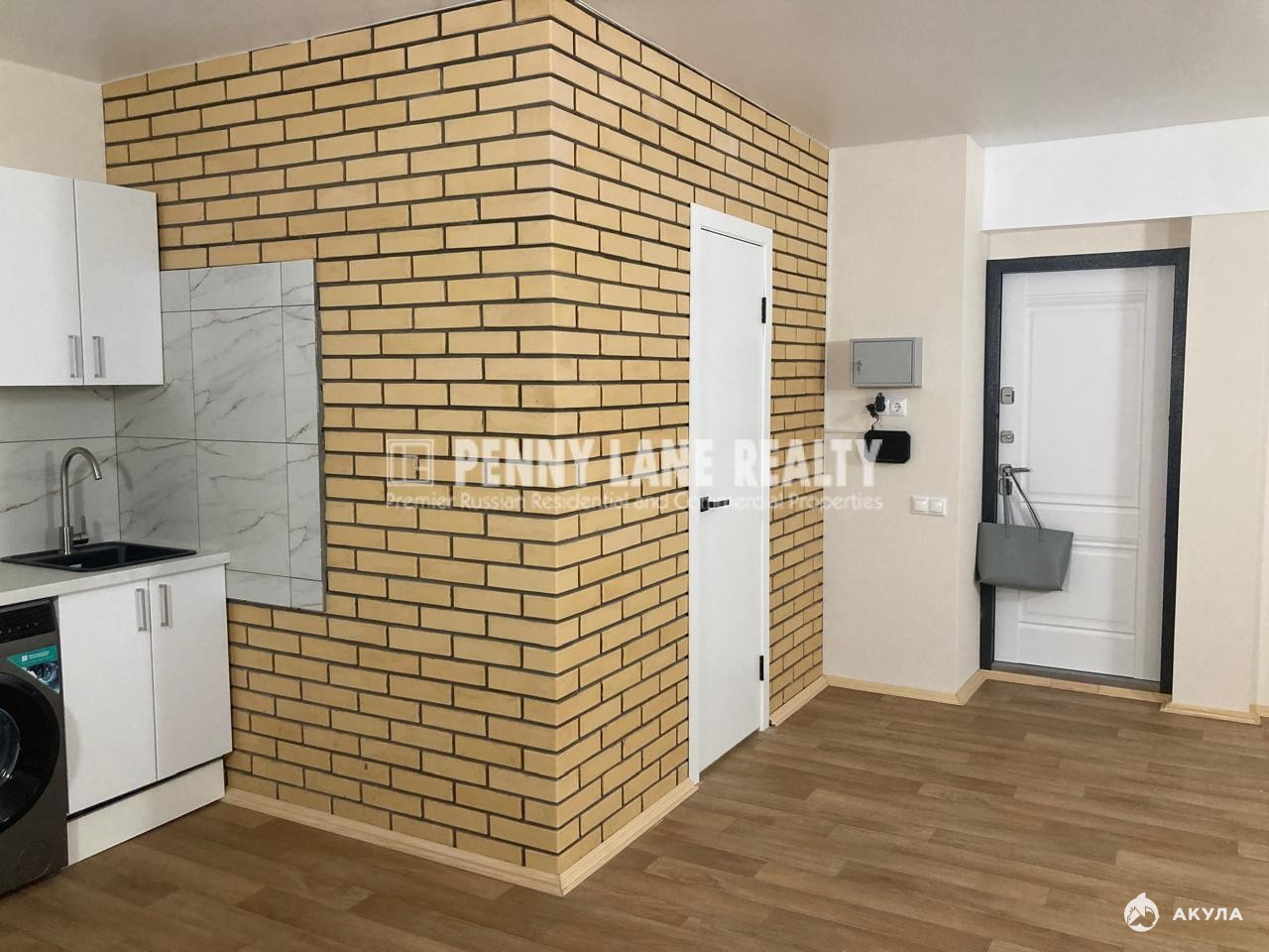 Площадь студии 32 кв.м., два широких окна, высота потолка 2, 7 м. В квартире встроенная кухонная мебель, холодильник, плита, стиральная машина, оборудованный санузел с душевой кабиной.