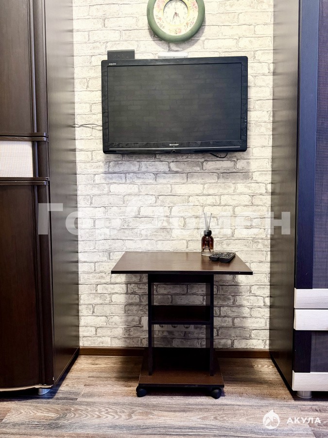 Вся необходимая мебель и техника присутствуют: шкафы, тумбы, диван, столик, тв, холодильник, плита, микроволновка. Качественная сан.техника, отличная входная дверь.