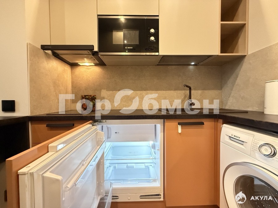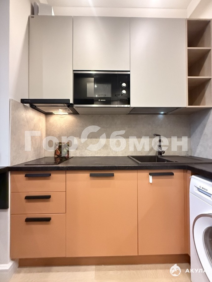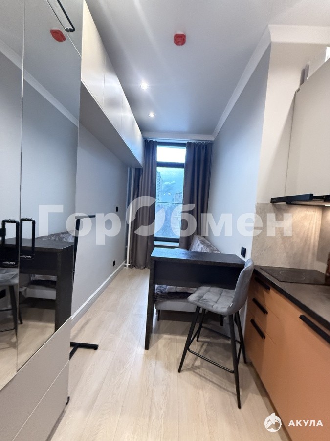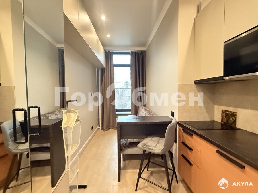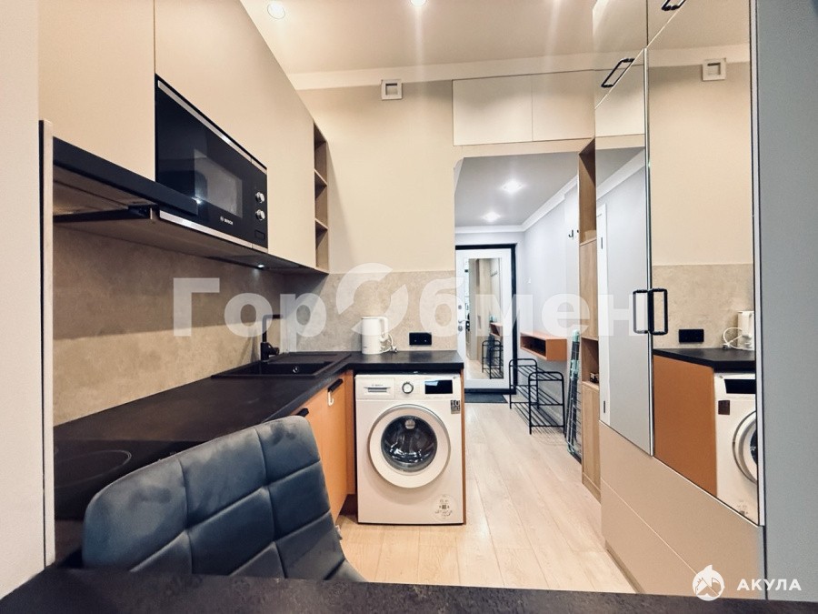 Общая площадь квартиры 13.3 м2. ПРОДУМАННОЕ зонированное пространство: открытая зона кухни с кухонной мебелью и встроенной техникой, зона спальни, кабинет, коридор и санузел.