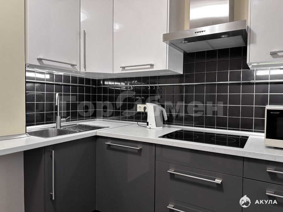 В квартире удобная просторная двуспальная кровать, вместительный шкаф, аккуратный комод, комфортное кресло, прихожая и современный телевизор – все продумано так, чтобы вам было легко обустроиться. Кухня оснащена свежим встроенным гарнитуром актуальных оттенков, стеклокерамической варочной панелью и новейшей бытовой техникой. Санузел выполнен по евростандарту, только качественная сантехника.