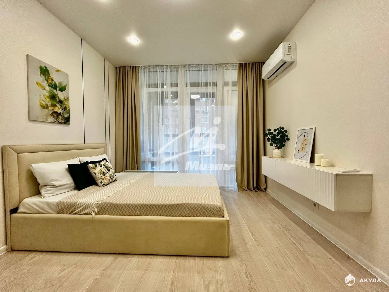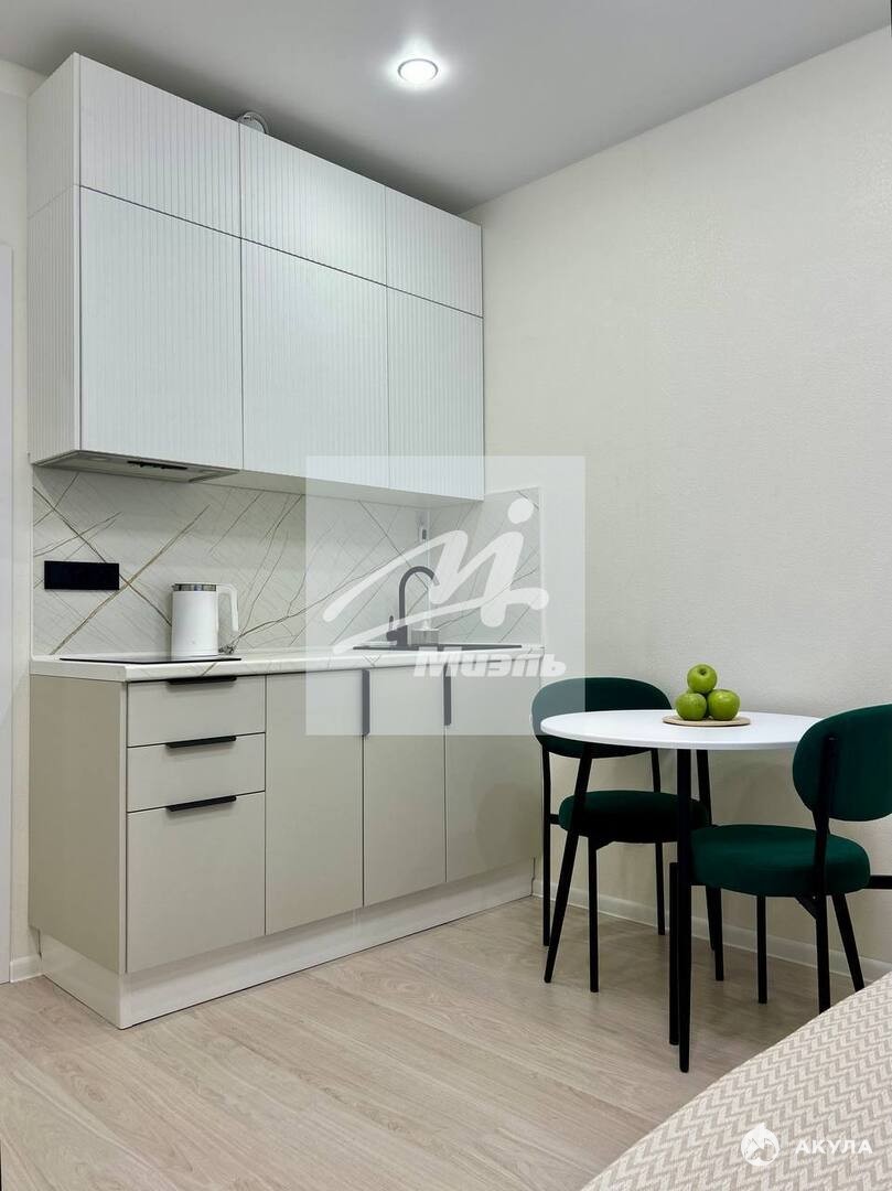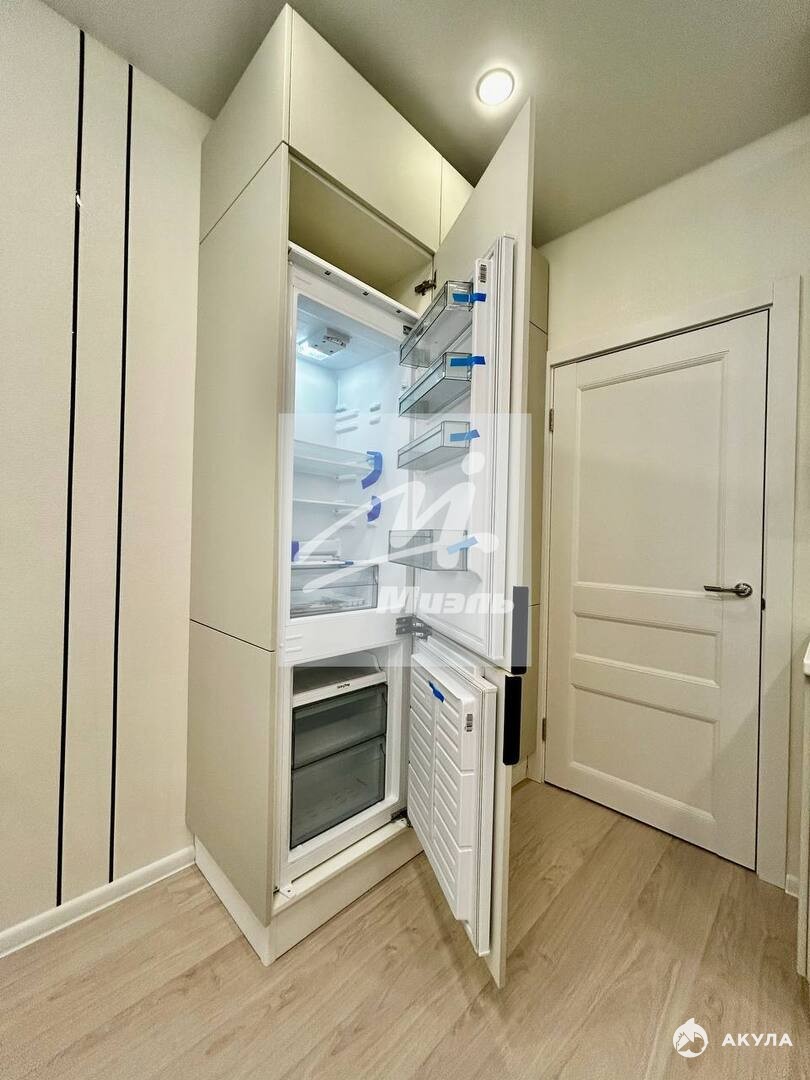 Оборудована новой встроенной мебелью, есть вся необходимая техника (кондиционер, индукционная плита, стиральная машина, полноценный холодильник с морозильной камерой, микроволновка).