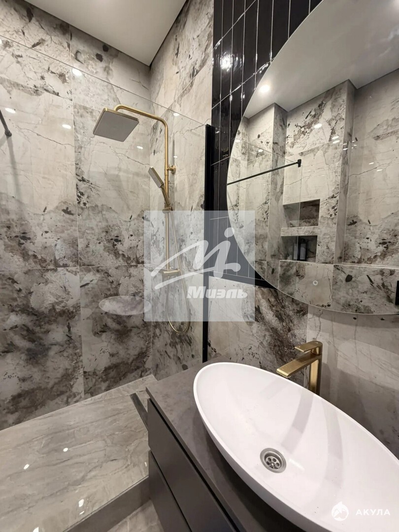Квартира полностью меблирована и оснащена необходимой бытовой техникой. Санузел совмещенный, отделка - керамогранит, установлена качественная сантехника. В кухне-столовой новый кухонный гарнитур со встроенной техникой.