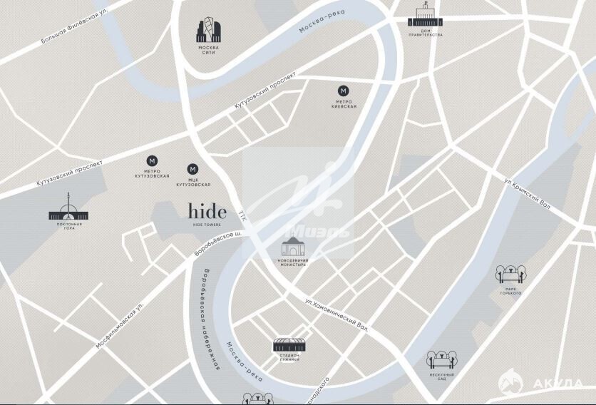 Квартира бизнес-класса в ЖК «Хайд», данный ЖК является непосредственно частью Московского делового центра со стильной отделкой и великолепным видом на перспективу города и деловой центр Москва-Сити. ЖК расположен между поймами Москвы-реки и реки Сетунь, в непосредственной близости от МГУ и административного района «Хамовники».
