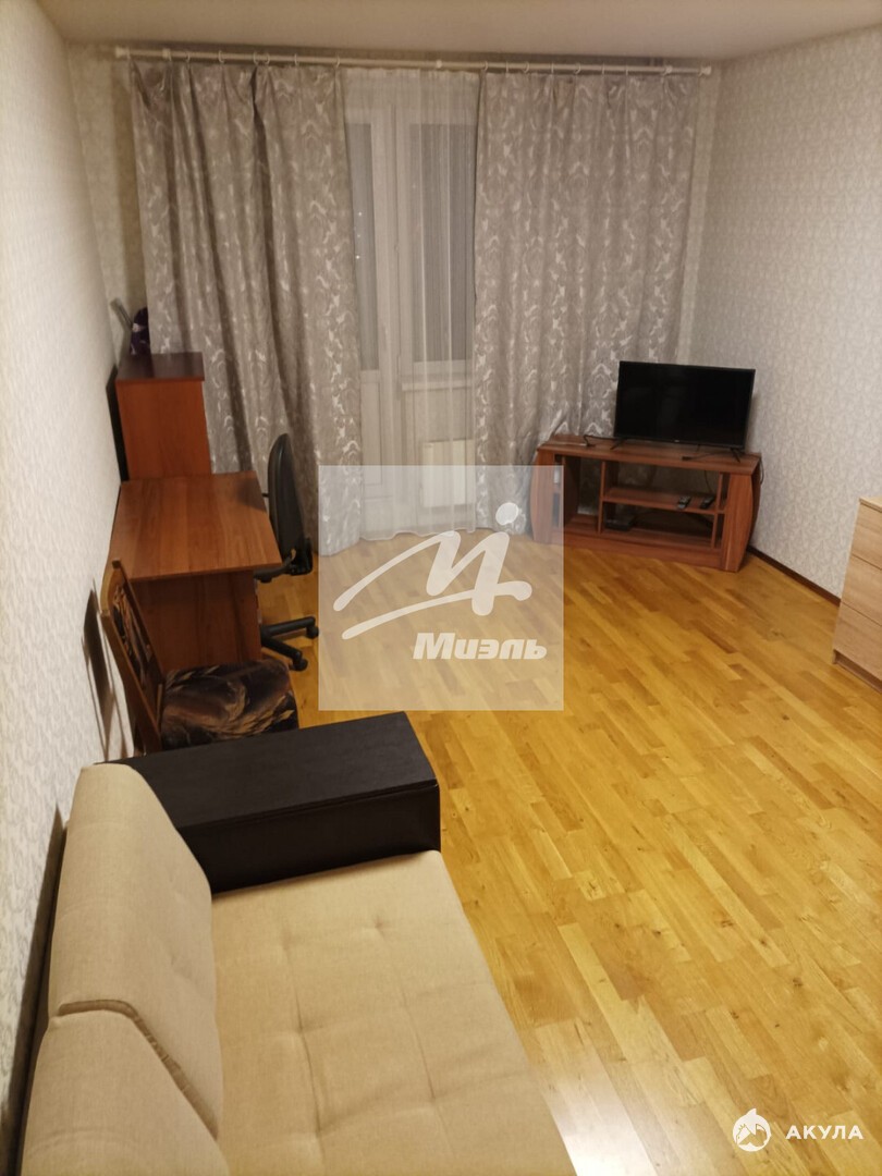 В жилой комнате есть раскладной диван, письменный стол, телевизор, подключен интернет. Есть шторы. Установлен домофон, пожарная сигнализация.