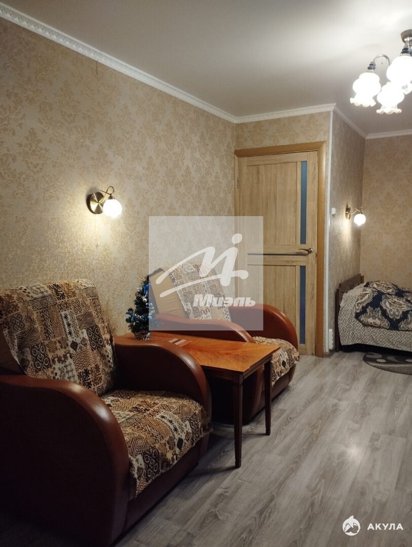 Просторная комната укомплектована добротной мебелью (мебельная стенка, где возможно разместить множество вещей, удобная кровать с матрасом, два мягких кресла, журнальный столик). Уютная кухня оборудована кухонным гарнитуром, в наличии работающая бытовая техника в виде холодильника Индезит, стиральная машинка автомат Индезит, микроволновая печь Самсунг, электрочайник, телевизор.