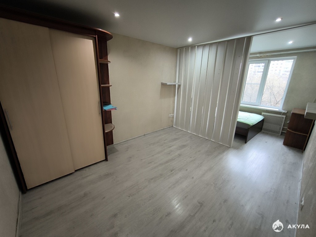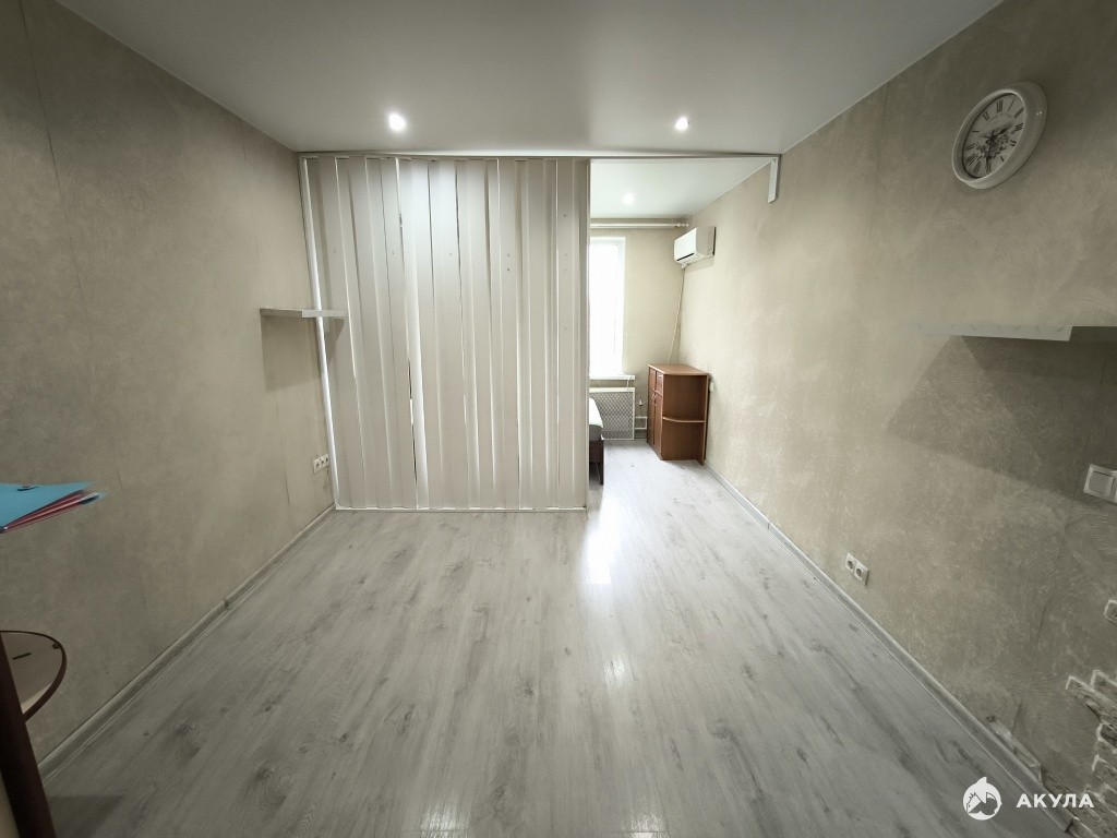 Площадь комнаты разделена на две зоны, таким образом получается гостевая или кабинет и отдельно спальня с окном.