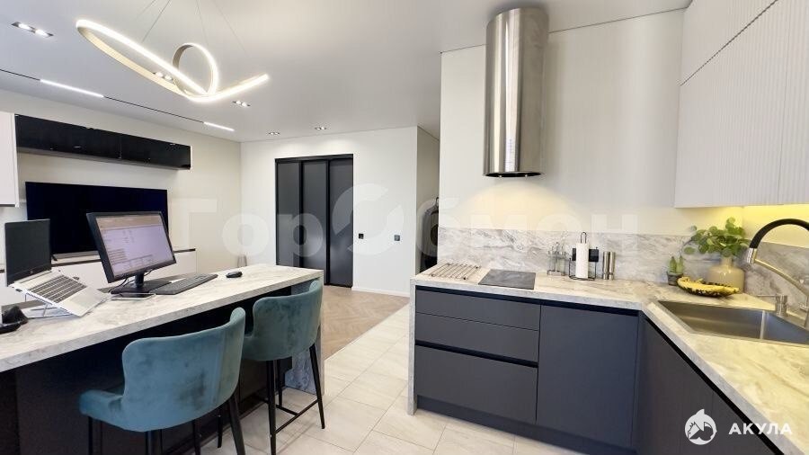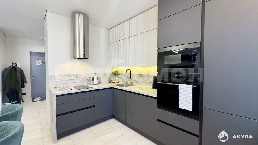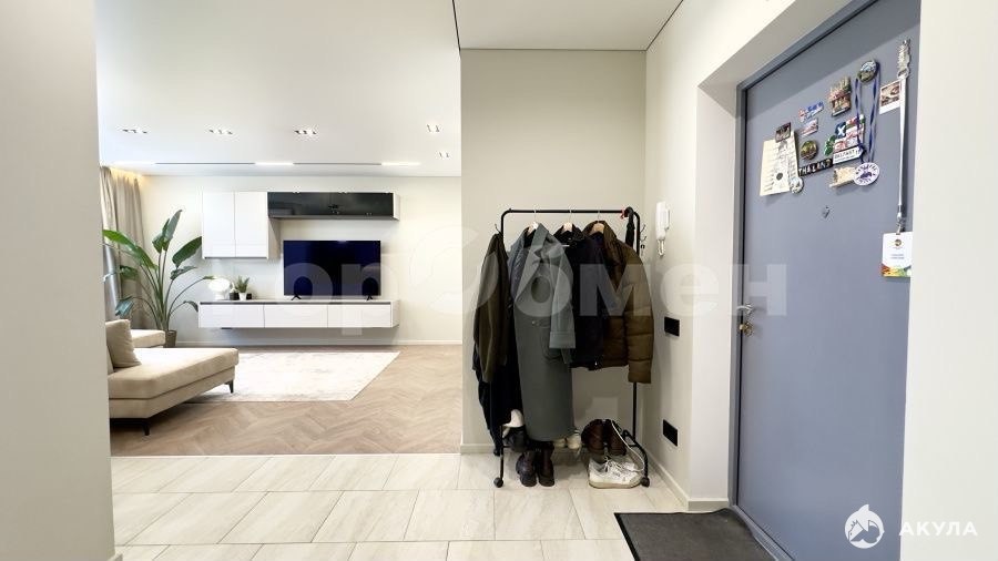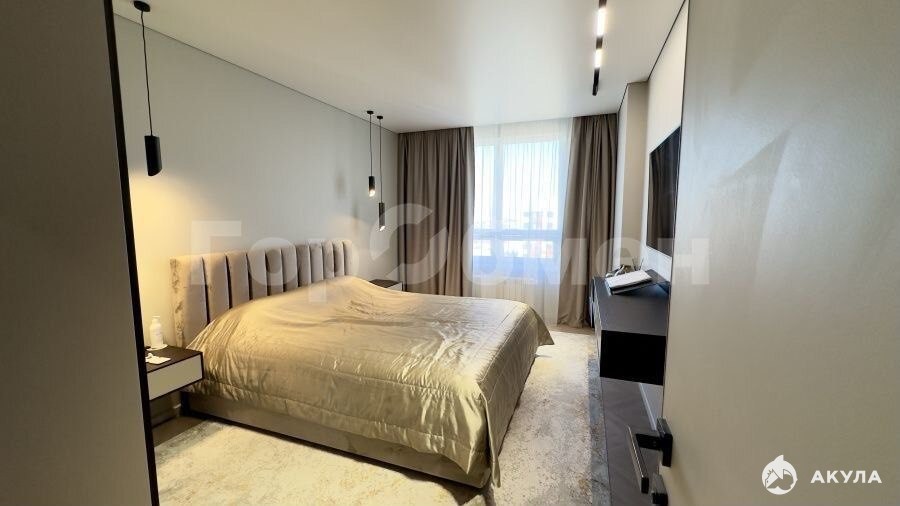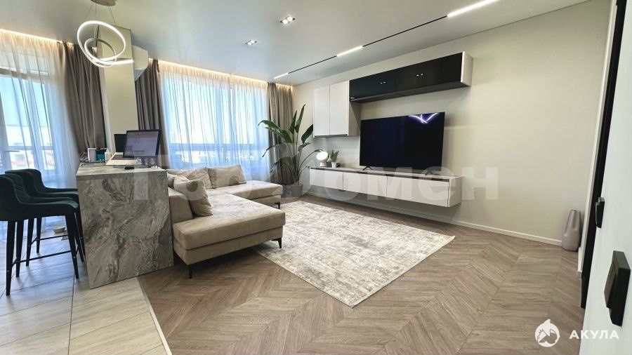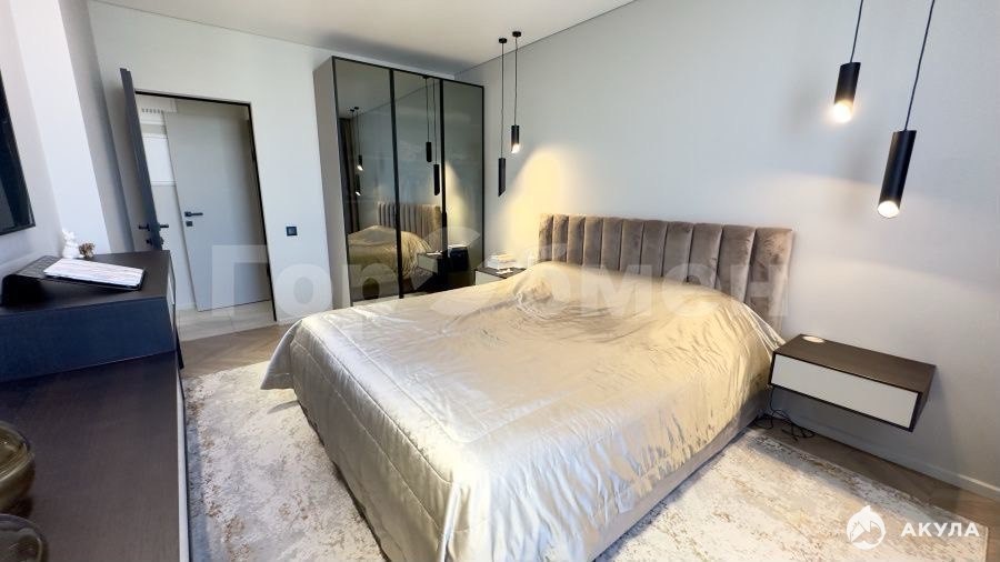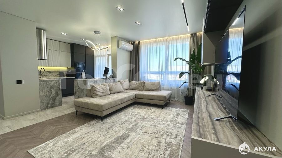 Очень качественный евроремонт, в наличии есть вся техника, стиральная машинка, холодильник, плита, вытяжка, посудомоечная машина, духовой шкаф, большая кровать в спальне, мягкий диван и телевизор в гостиной, застекленная лоджия, совмещенный санузел. Есть гардеробная.