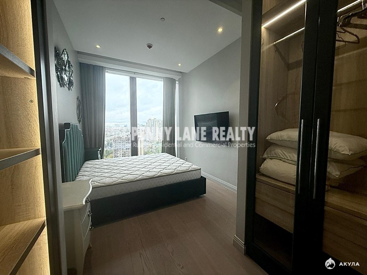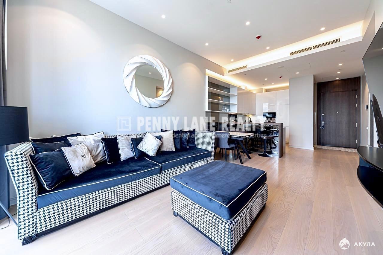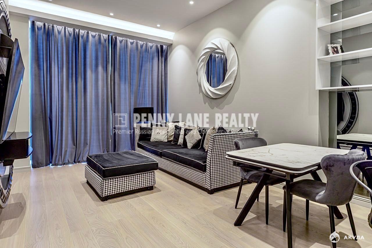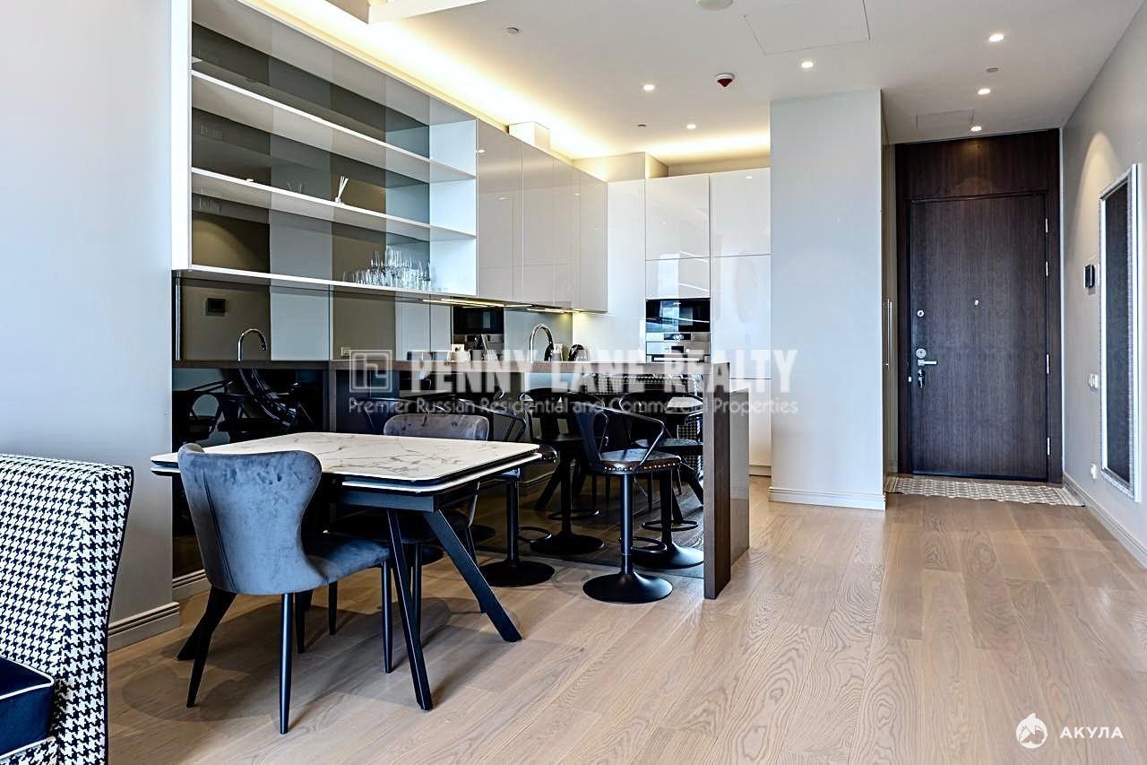 Арт. 88957564. Апартаменты площадью 62 м² в жилом комплексе NEVA TOWERS в Москва-Сити. Из окон открывается вид на деловой центр ICity с его выразительной архитектурой и вечерней подсветкой.