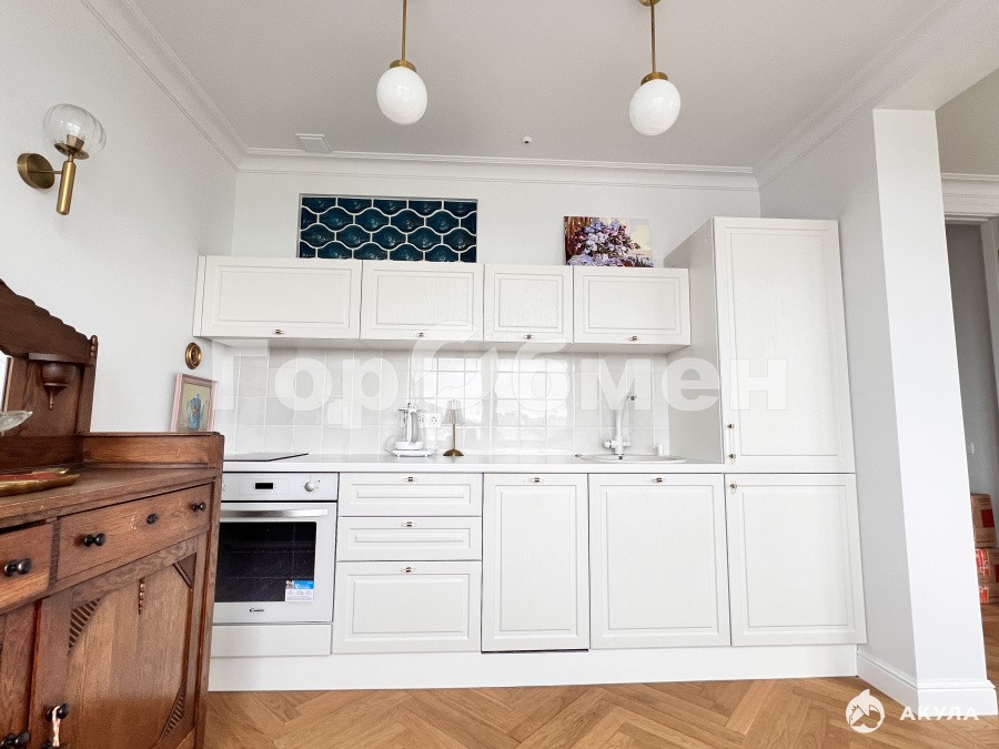 Прекрасные видовые характеристики. Высокие потолки. Стильные высокие двери, сделанные на заказ. Дизайнерский ремонт с элементами винтажа. Паркет. Вся необходимая мебель и техника, включая измельчитель отходов и фильтр на воду. Много мест для хранения. Кондиционер.