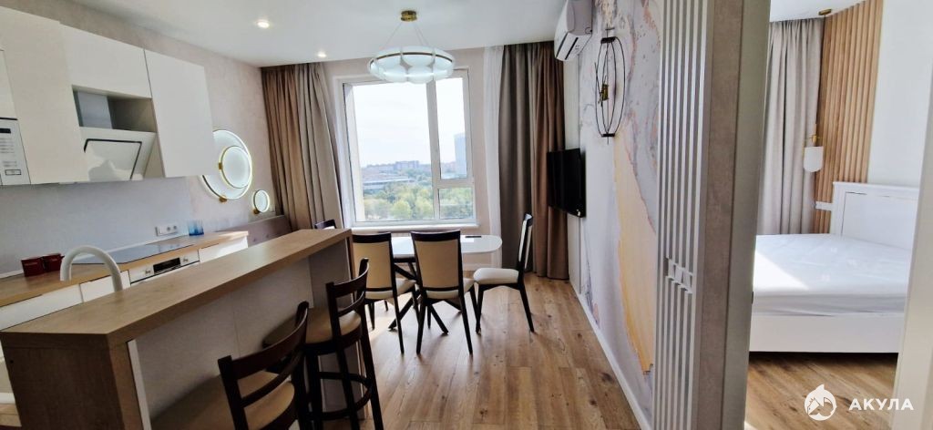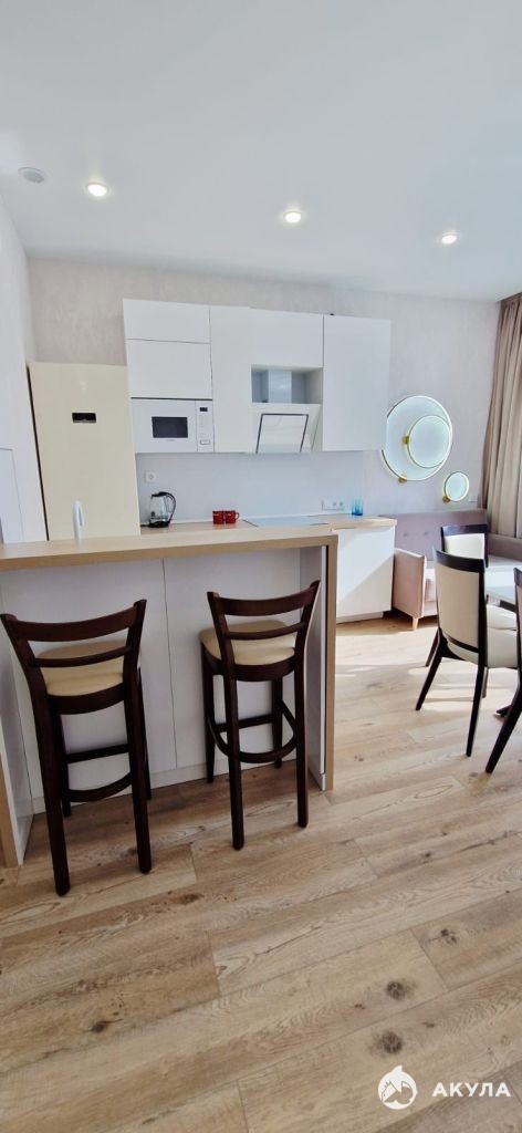 В квартире выполнен современный качественный рeмoнт, функциональная планировка: просторная кухня-гостиная, две отдельные комнаты, два сан/узла. В наличии мебель и бытовая техника, включая посудомоечную машину, кондиционеры, стиральную машину с сушкой, СВЧ, шторы блэкаут.