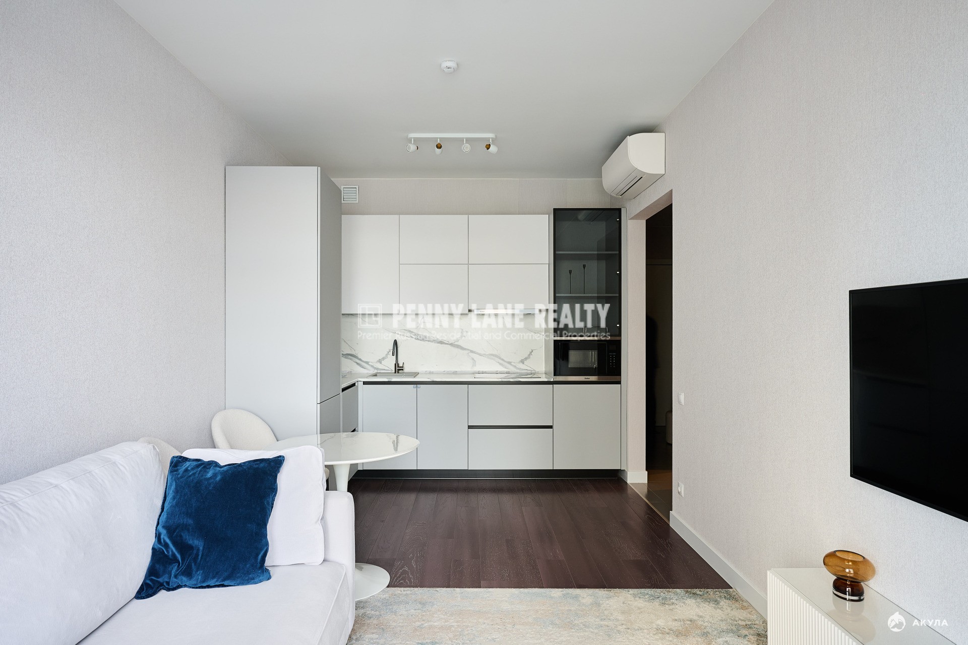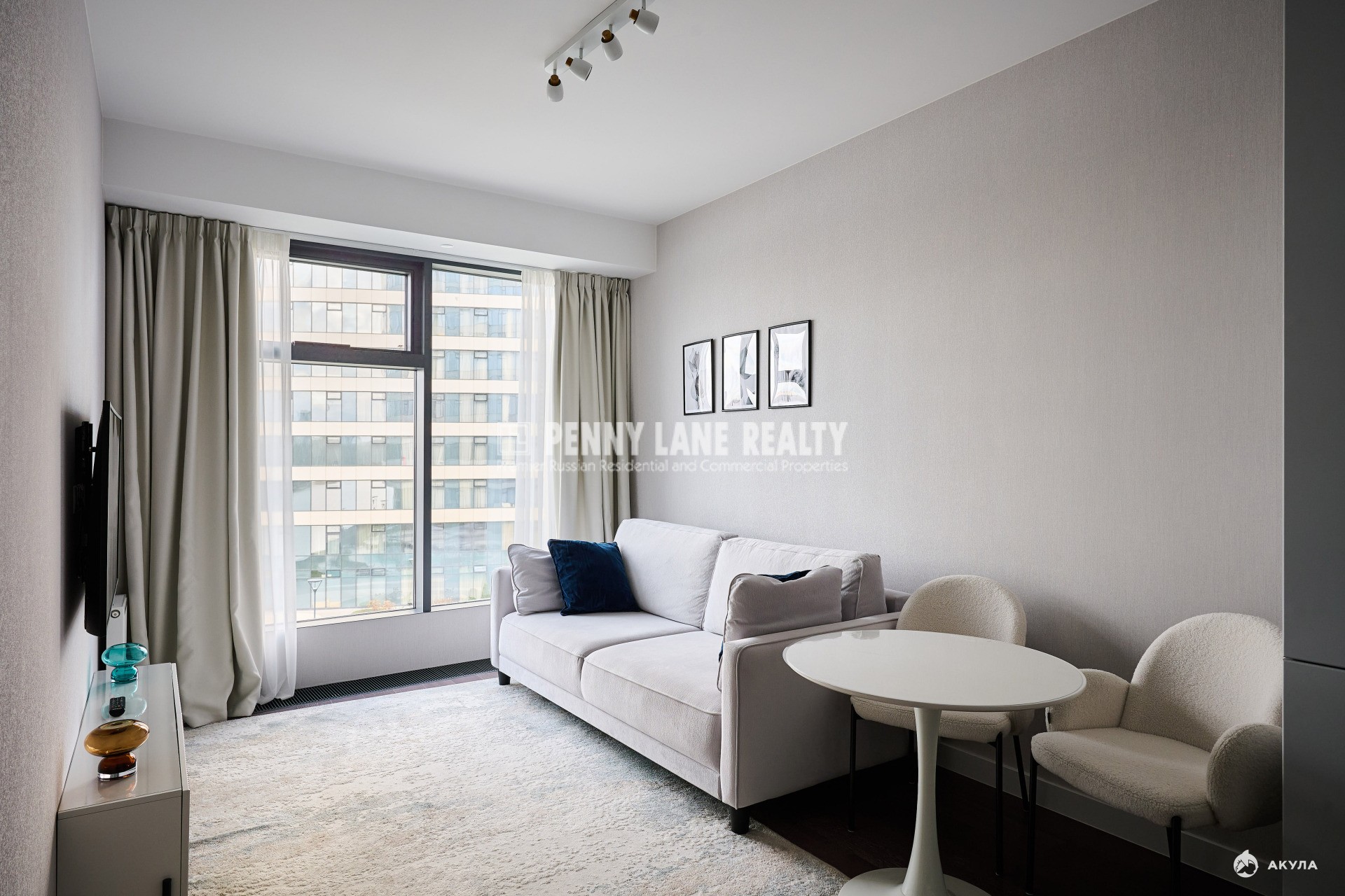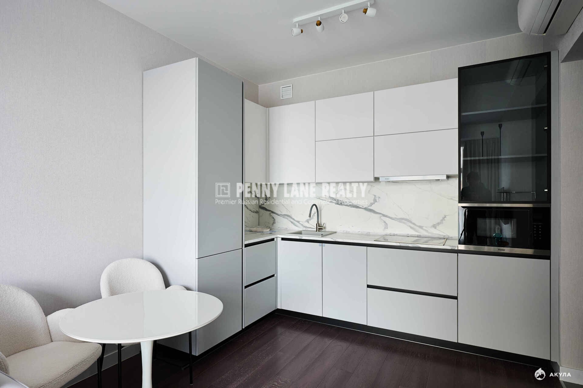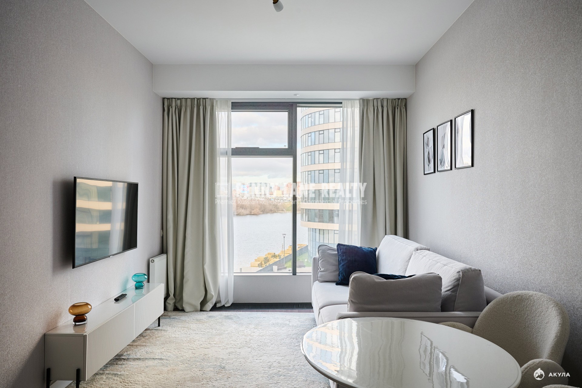 Арт. 89643620. Без комиссии для арендатора! Видовая квартира в новом ЖК бизнес-класса Акватория (2022г.). Новый ремонт. Панорамные окна выходят на канал имени Москвы. Высокие потолки. Дизайнерский ремонт. Мебель и бытовая техника ведущих мировых производителей. Система "умный дом". Теплые полы. Планировка: кухня-гостиная, спальня, санузел с душевой кабиной, гардеробная.