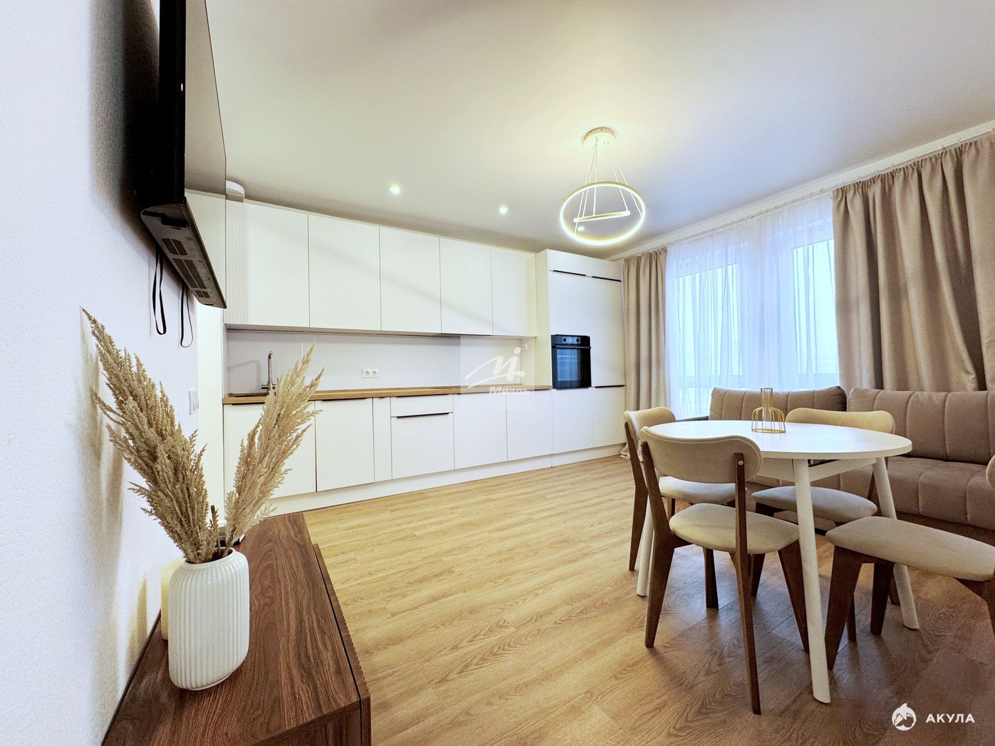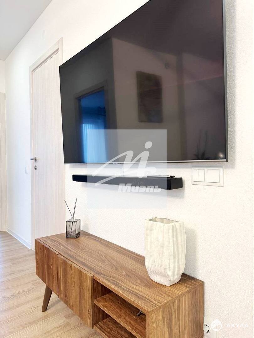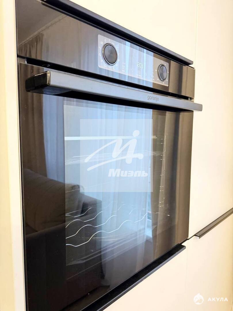 В квартире: ПОСУДОМОЕЧНАЯ машина, кухонный гарнитур, ИЗМЕЛЬЧИТЕЛЬ отходов, ВМЕСТИТЕЛЬНЫЕ шкафы, холодильник, плита, стиральная машина с функцией СУШКИ, МЯГКИЙ ДИВАН и КРОВАТЬ.