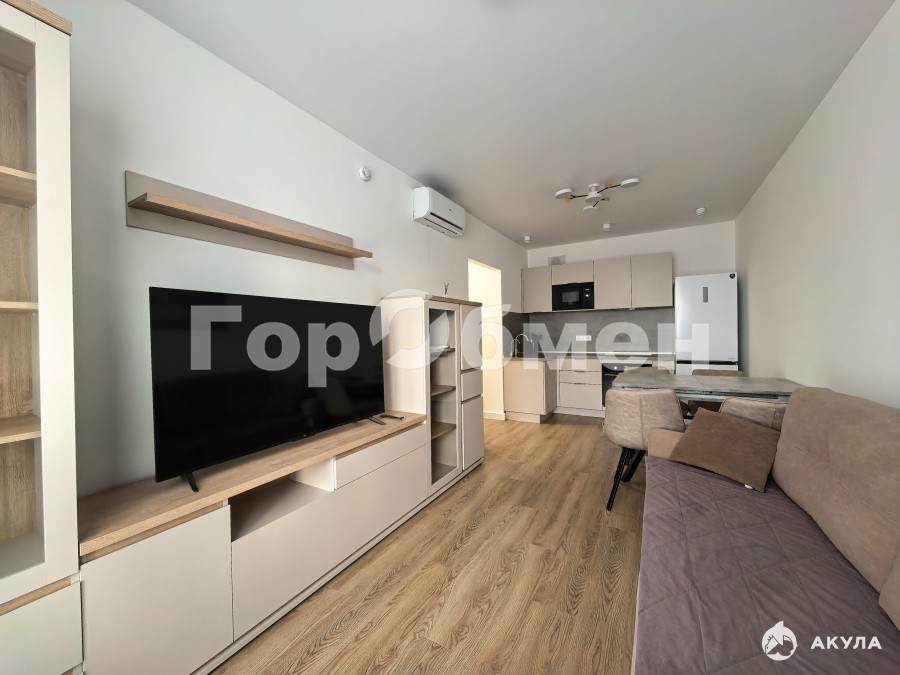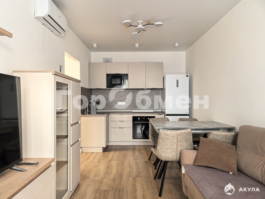 Квартира оснащена всей необходимой новой мебелью и новой бытовой техникой (фильтр для питьевой воды, электрическая варочная панель, электрический духовой шкаф, вытяжка, полноразмерный холодильник, электрический чайник, стиральная машина, утюг). В кухне-гостиной установлен кондиционер.