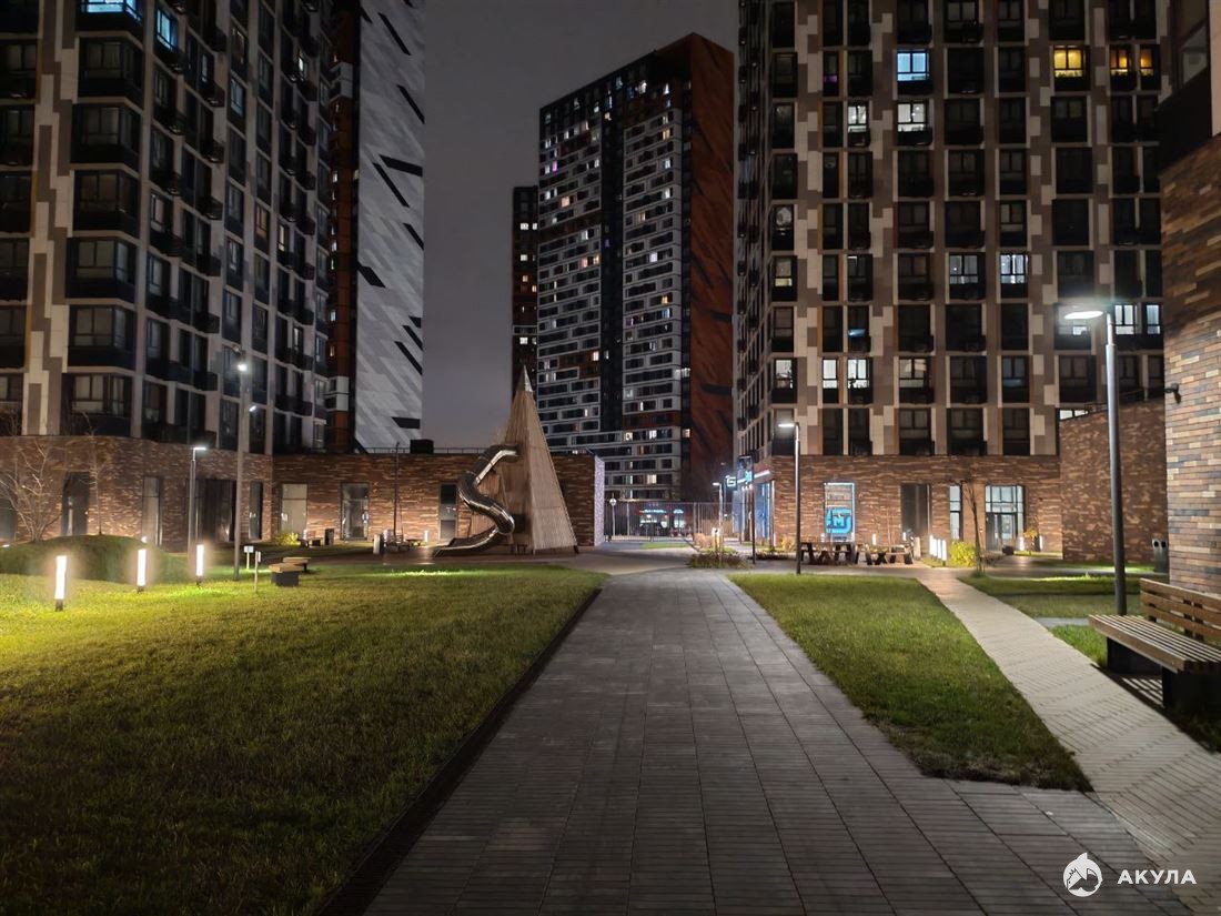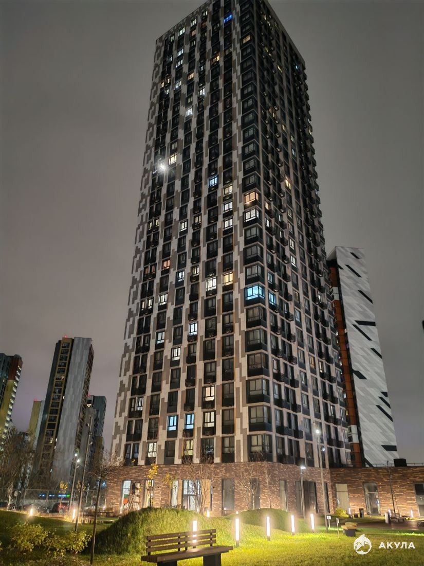 Общая площадь составляет 36.8 кв. м, жилая — 20 кв. м, кухня — 10 кв. м. Квартира расположена на 16 этаже 28-этажного дома, поэтому открывается прекрасный вид на город. Всего в доме один пассажирский и два грузовых лифта, что существенно облегчает перемещение.