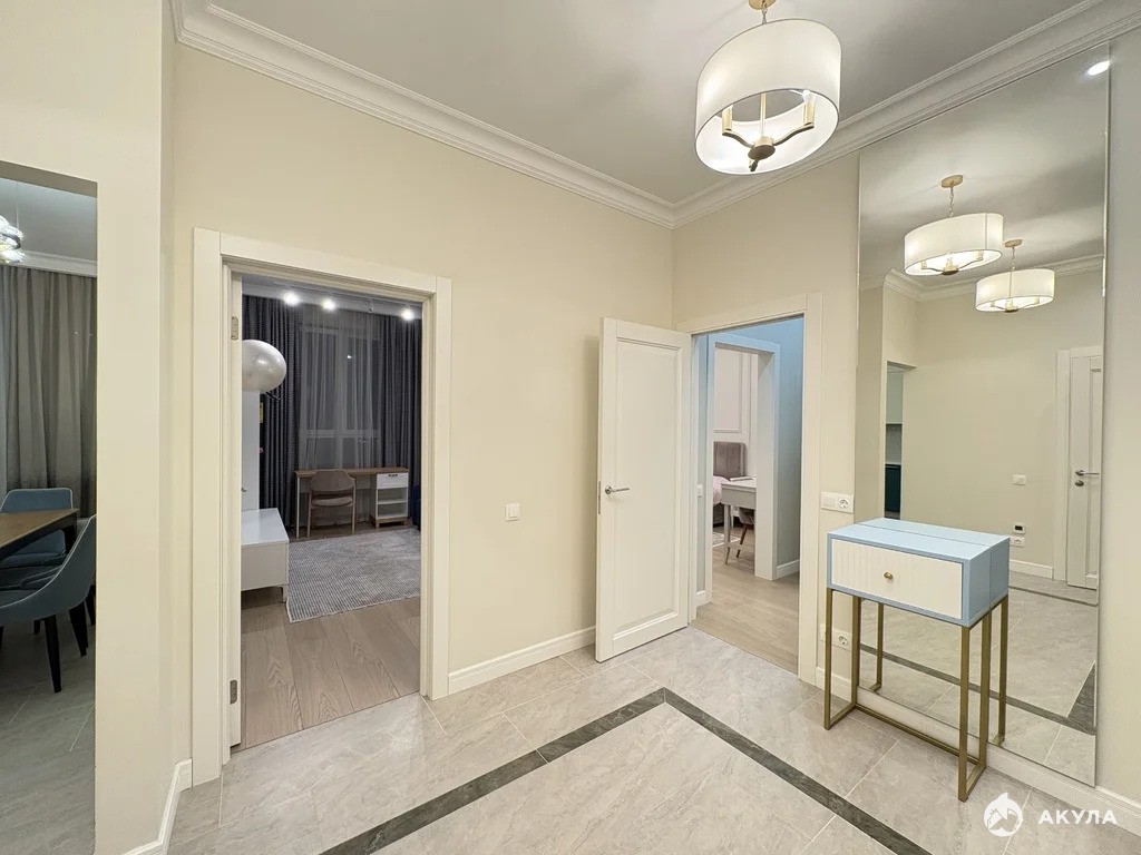 Отдельно спальня, отдельно детская комната с диваном и кухня-гостиная. Вместительные шкафы. 2 санузла (один с душевой кабиной, второй с ванной). Полностью меблирована. Есть все необходимое для проживания, на фото видна вся мебель и техника. Виды во двор, вид из окна представлен на фото. Комфортные и дизайнерские дворы.