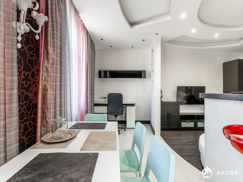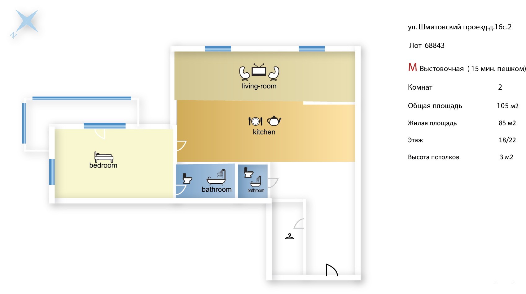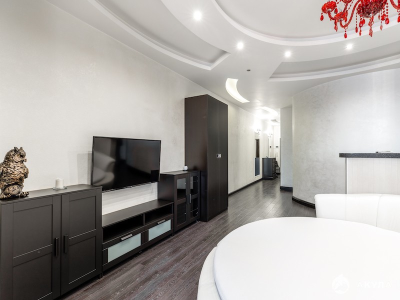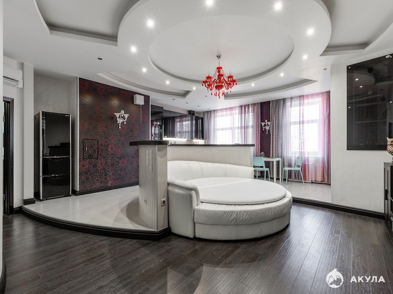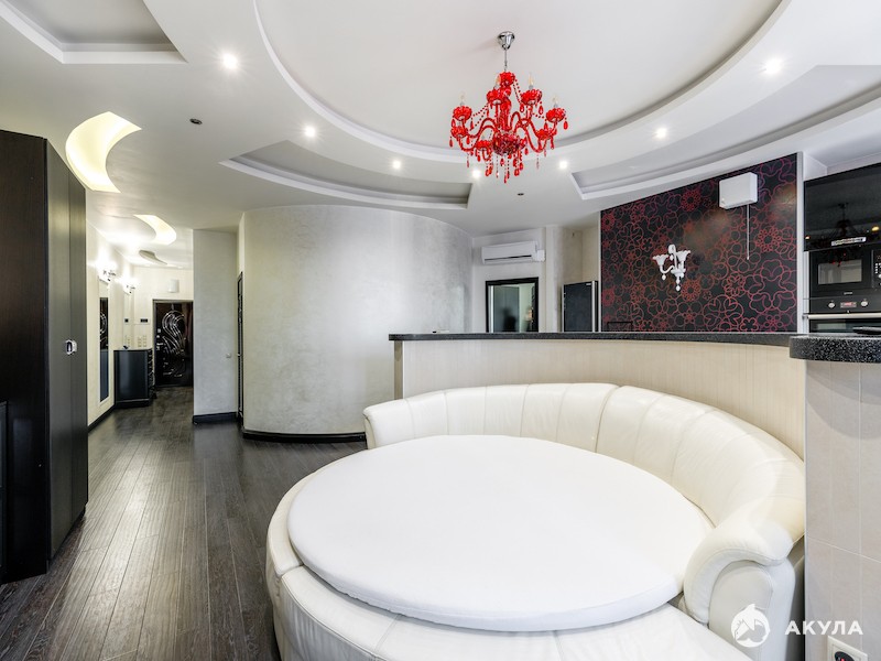 Арт. 49831920. Предлагается стильная двухкомнатная квартира на 18 этаже современного ЖК Шмитовский 16, расположенном в районе Красной Пресни, с шикарным видом на половину Москвы. В квартире выполнен ремонт по авторскому дизайн-проекту, современные оборудование и инженерия, подогрев полов, кондиционеры, бойлер, ТВ, Wi-Fi. Квартира полностью укомплектована мебелью. Стены – эксклюзивная краска с эффектом мерцания светлых тонов и авторские английские обои ручной работы, пол - ламинат и итальянская плитка и мозайка, окна - стеклопакеты. Потолок – разно уровневый, люстры и бра из итальянского стекла. Кухня-гостиная 60 кв.м. с огромным круглым диваном и барной стойкой, тумба под аппаратуру, ЖК ТВ, есть место под кабинет с письменным столом и полкой. Уютная черно-белая спальня 25 кв.м. с круглой кроватью, коридор с зеркальным вместительным шкафом-купе, 2 с/узла (совмещенный санузел с джакузи, и гостевой санузел с душевой). Черная кухня, наличие всей необходимой бытовой техники (холодильник, встроенные: микроволновая печь, посудомойка, варочная панель, духовой шкаф, Gorenje и прочее). Просторный балкон с теплым полом, видео-домофон.