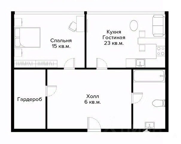 Функциональная планировка: кухня-гостиная, спальня, гардероб, санузел с ванной/душевой кабиной. Теплые полы. Окна во двор на Малую Пионерскую ул. В квартире очень тихо.
