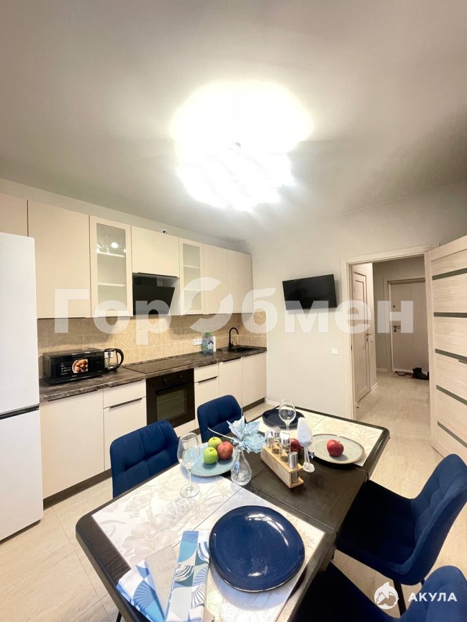 В квартире имеется вся необходимая для проживания мебель и техника: шкафы и полки для вещей, зеркала, комфортная кровать, кондиционер, телевизоры на кухне и в комнате, стиральная и посудомоечная машинки, холодильник, варочная панель, духовка, свч, большой кухонный стол и другие удобства.