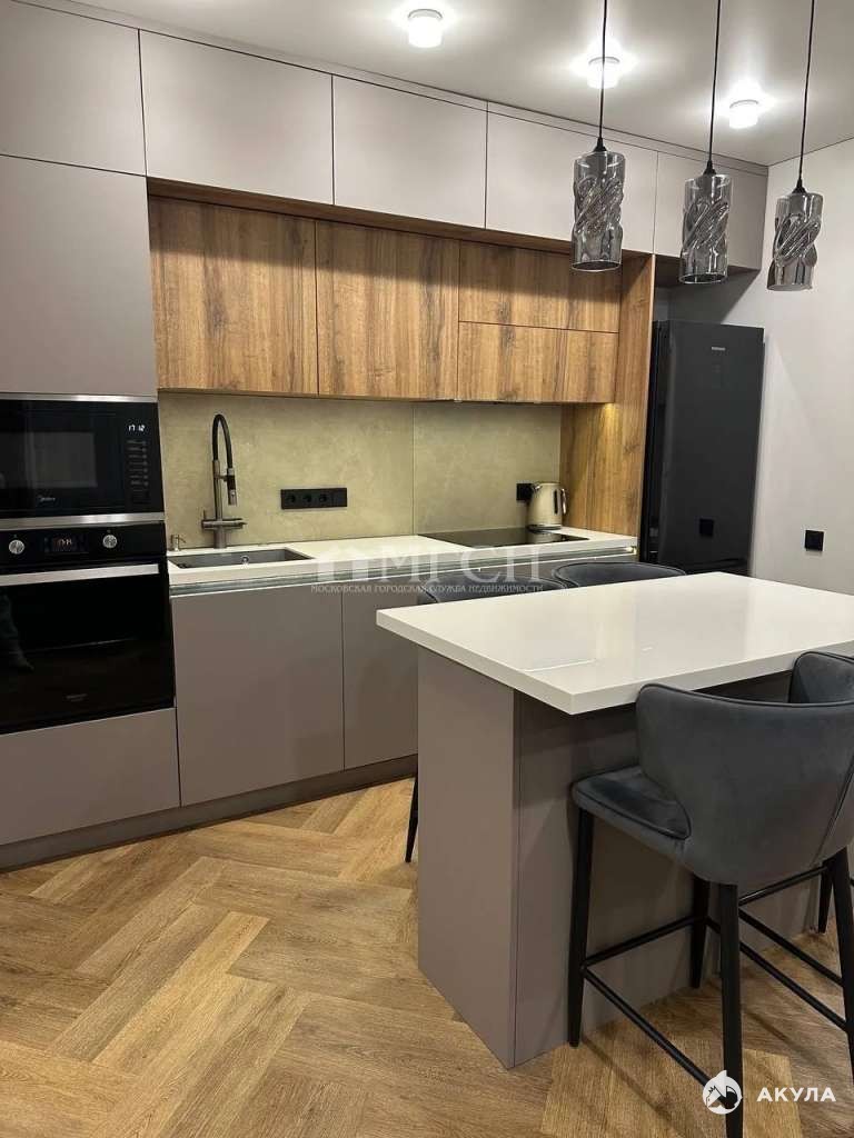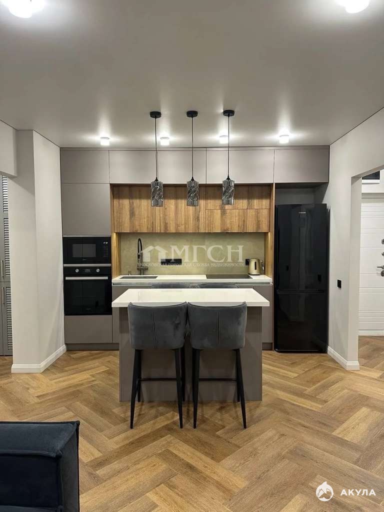 - Просторная кухня-гостиная площадью 20 квадратных метров – это сердце квартиры, идеальное место для приема гостей и проведения семейных вечеров. Современный кухонный гарнитур оснащен передовой техникой, включая посудомоечную машину, водонагреватель и измельчитель пищевых отходов, что сделает процесс приготовления пищи легким и приятным.
