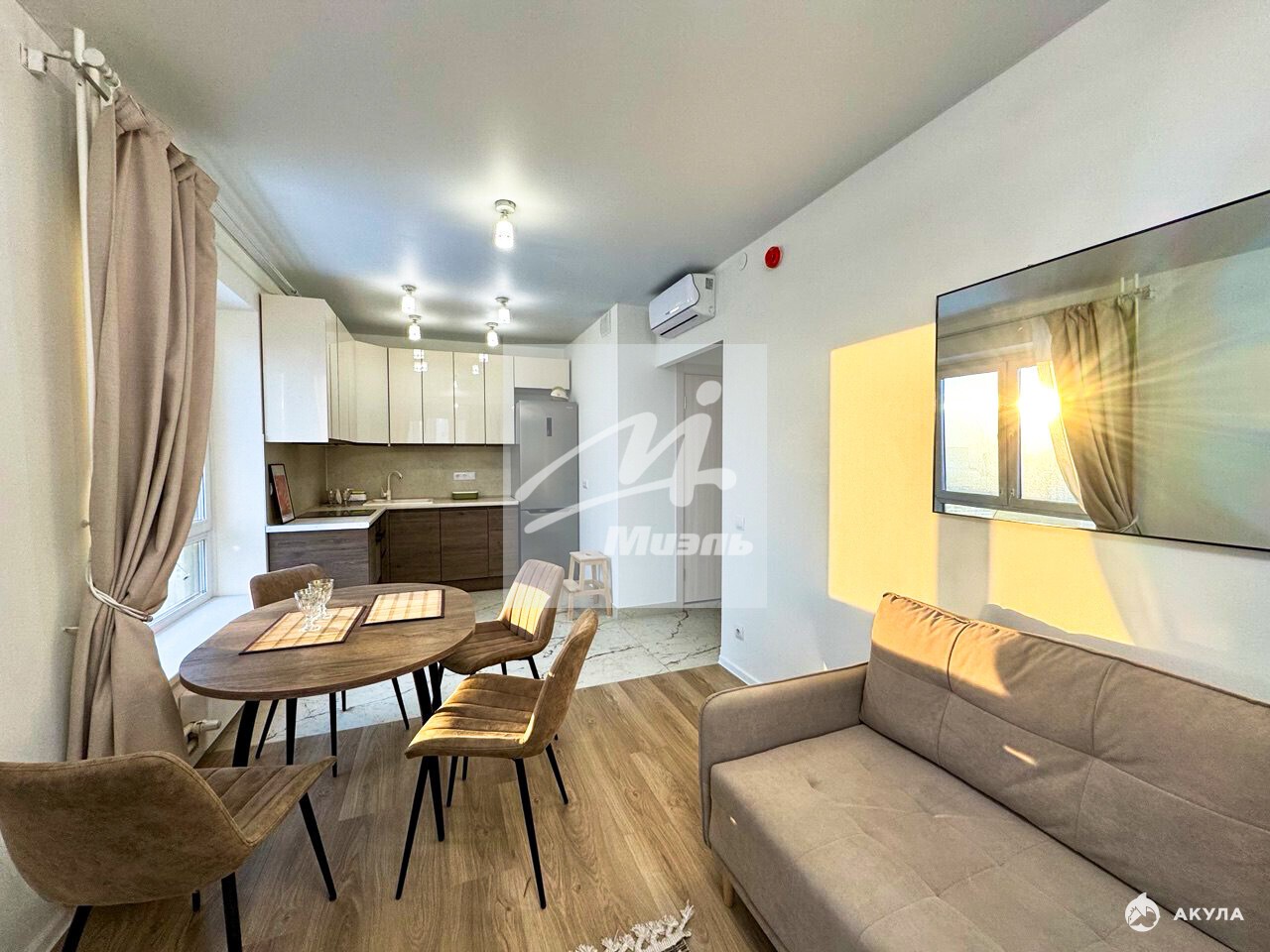 Тип: Евро-трешка (две отдельные комнаты и просторная кухня-гостиная).