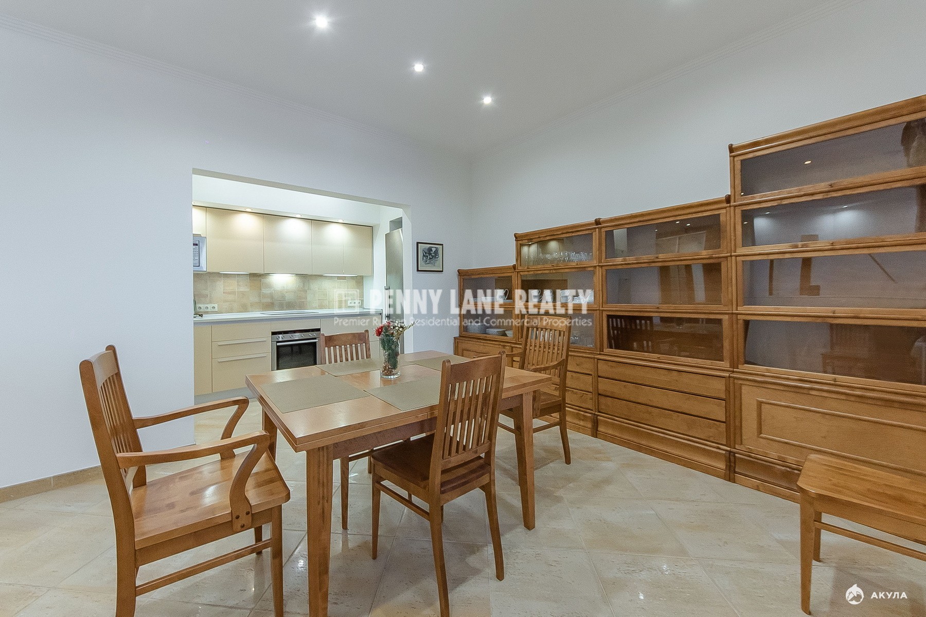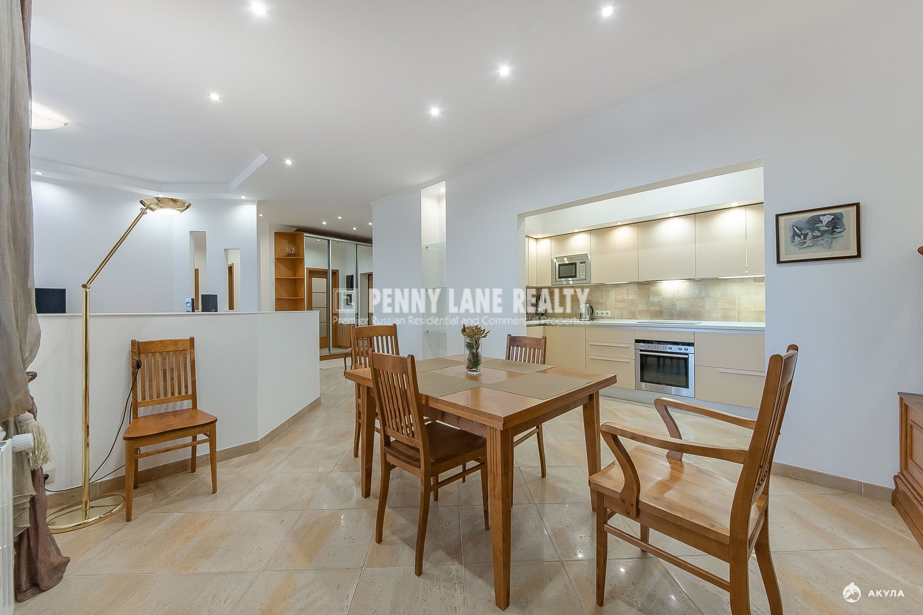 Планировка: общее пространство гостинной, столовой и кухней, прекрасно зонировано, спальня с лоджией, вторая спальня или кабинет, два санузла. В квартире выполнен качественный ремонт из натуральных материалов и благородных пород дерева.
