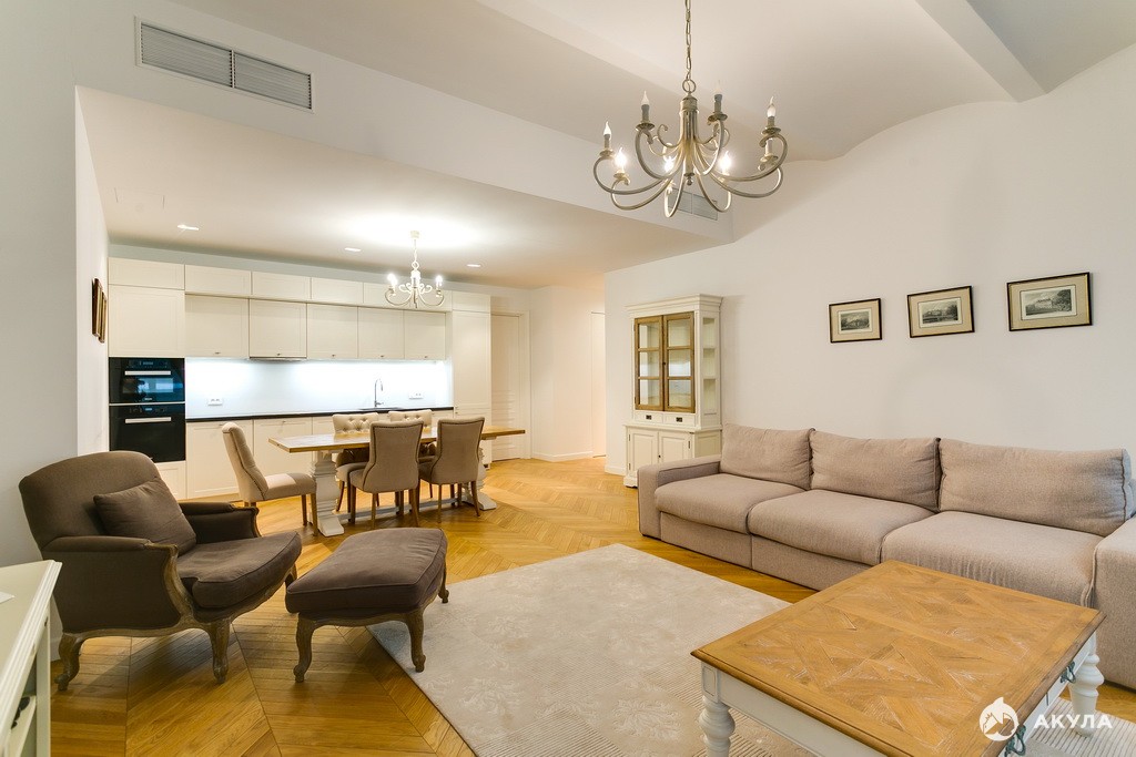 Арт. 58881821. Шикарные 3-комнатные апартаменты площадью 124 кв.м в ЖК St.Nickolas с качественным дизайнерским ремонтом. Полностью укомплектованы мебелью, оборудованы современной бытовой техникой. Функциональное планирование: гостиная-столовая-кухня, мастер-спальня с ванной и гардеробной комнатой, гостевой санузел, детская с ванной и гардеробной комнатой.