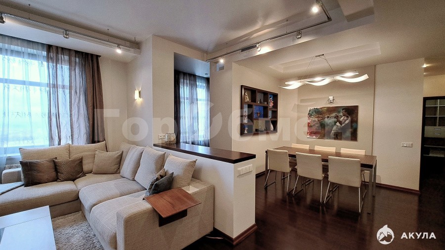 В квартире имеется вся необходимая для комфортного проживания мебель и бытовая техника от ведущих мировых производителей: встроенные кофемашина, духовой шкаф и СВЧ печь -фирмы Neff, 2 холодильника, посудомоечная машина Simens, стиральная машина, варочная поверхность с вытяжкой.