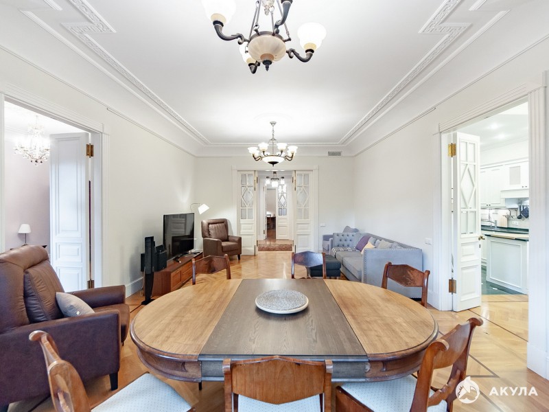 По планировке: просторная гостиная, 3 изолированные комнаты, кухня-столовая, 2 полноценные ванные комнаты, гостевой санузел, хозяйственный блок, гардеробная, прихожая. Качественный современный интерьер: дорогостоящая отделка (большое количество дерева, натурального камня) и оригинальная дизайнерская мебель (без мягкой мебели). Интерьер пастельных оттенков создаёт комфортную уютную атмосферу. Потолки 3.2м. Квартира оснащена и оборудована всем необходимым: от встроенной системы кондиционирования до интернета. Солидные соседи. Лояльный собственник. Отличный вариант для семьи с детьми и домашними питомцами. Для владельцев авто в стоимость включено 1 машиноместо в подземном паркинге.