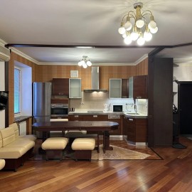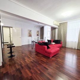 Просторная Трехкомнатная квартира Общ.площадь 86 кв.м, окна Стеклопакеты с мраморными подоконниками, два кондиционера в Гостиной и в Спальне, потолки 3 метра, полы - натурального красного дерева в прекрасном состоянии, Кухня, совмещенная с Гостиной - 32 кв.м, и две Спальни - 20 и...