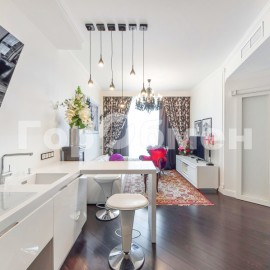 СТИЛЬНАЯ КВАРТИРА! Квартира идеально подходит для тех, кто ценит качество, стиль и комфорт. Панорамные окна на Центр Москвы. Планировка: - Кухня - Гостиная: все продуманно до мелочей: - разноуровневое освещение; - встроенная техника (посудомоечная...