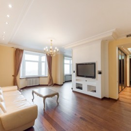 Арт. 48905934. Без комиссии для арендатора. В аренду предлагается 4-хкомнатная квартира общей площадью 200 кв.м. в центральной секции «Триумф-Паласа». Назначение комнат: большая гостиная, соединенная с кухней-столовой, 3 спальни, 2 полноценных санузла, подсобная комната....