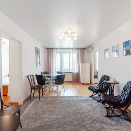 Арт. 85544669. БЕЗ КОМИССИИ! Прекрасная 4-х комнатная квартира в ЖК "Климашкина 19" с ДИЗАЙНЕРСКИМ РЕМОНТОМ! Красивый панорамный вид из окон, выходящих на улицу и во двор. Планировкой предусмотрено: - просторная кухня-гостиная; - 3 уютные изолированные спальни; - 3 санузла; -...